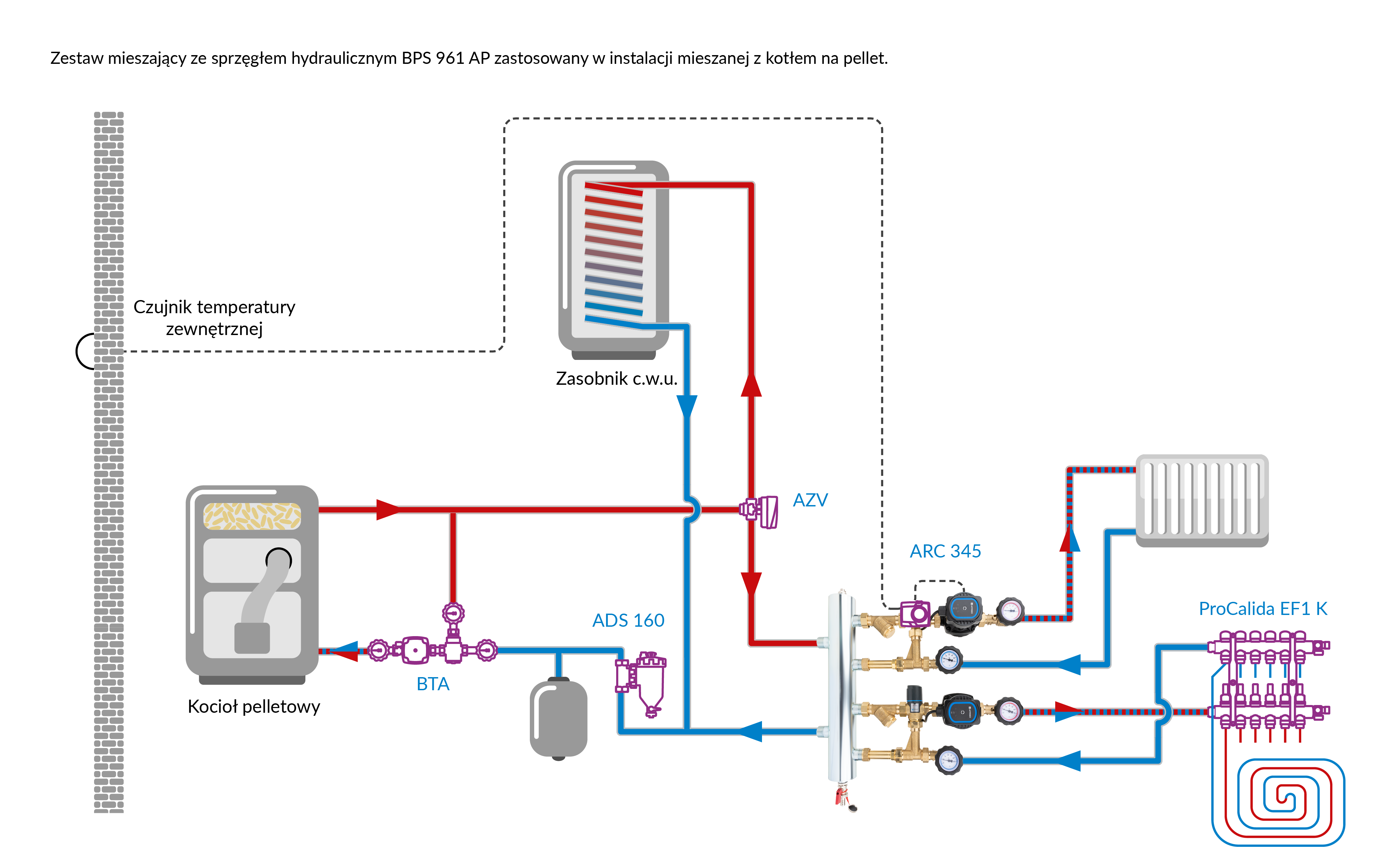 Stosowany w instalacjach grzewczych i chłodzących.Montowany na ścianie między źródłem a instalacją.