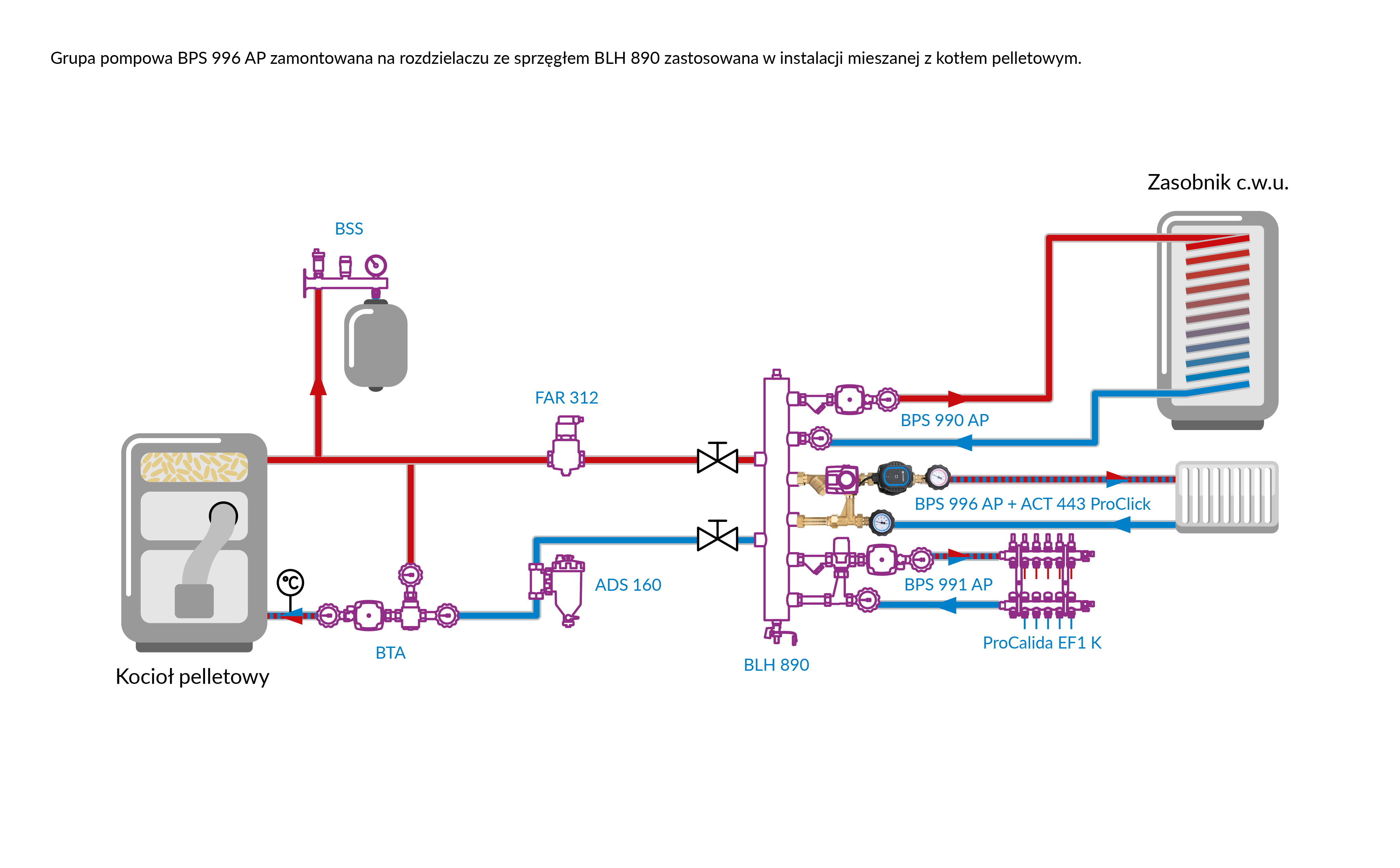Stosowana w instalacjach grzewczych i chłodzących.Montowana na rozdzielaczu ze sprzęgłem hydraulicznym BLH 890 lub między źródłem ciepła/chłodu a odbiornikiem.