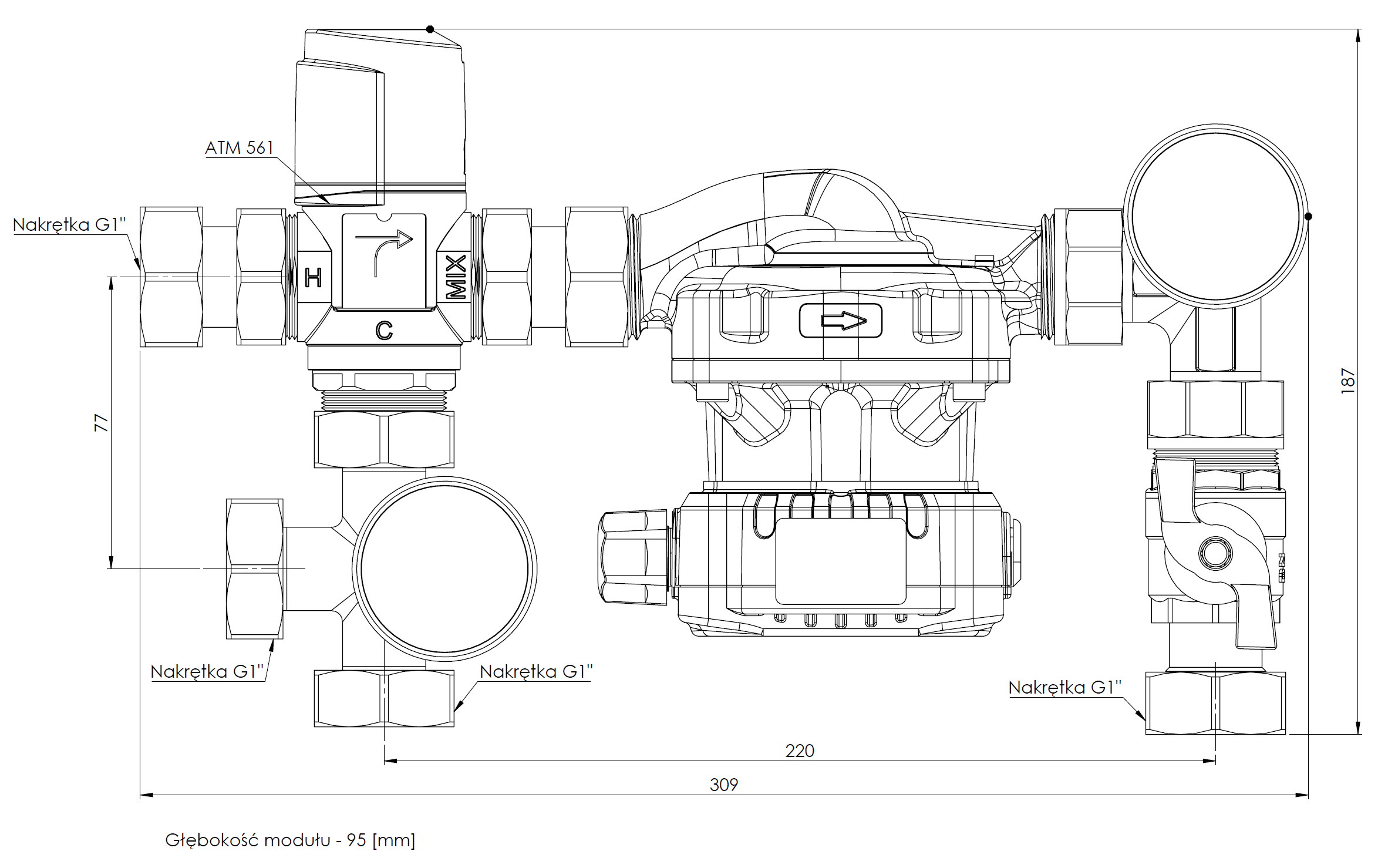 Stosowany w instalacjach grzewczych.Montowany między źródłem ciepła a rozdzielaczem ogrzewania płaszczyznowego w szafce rozdzielacza.