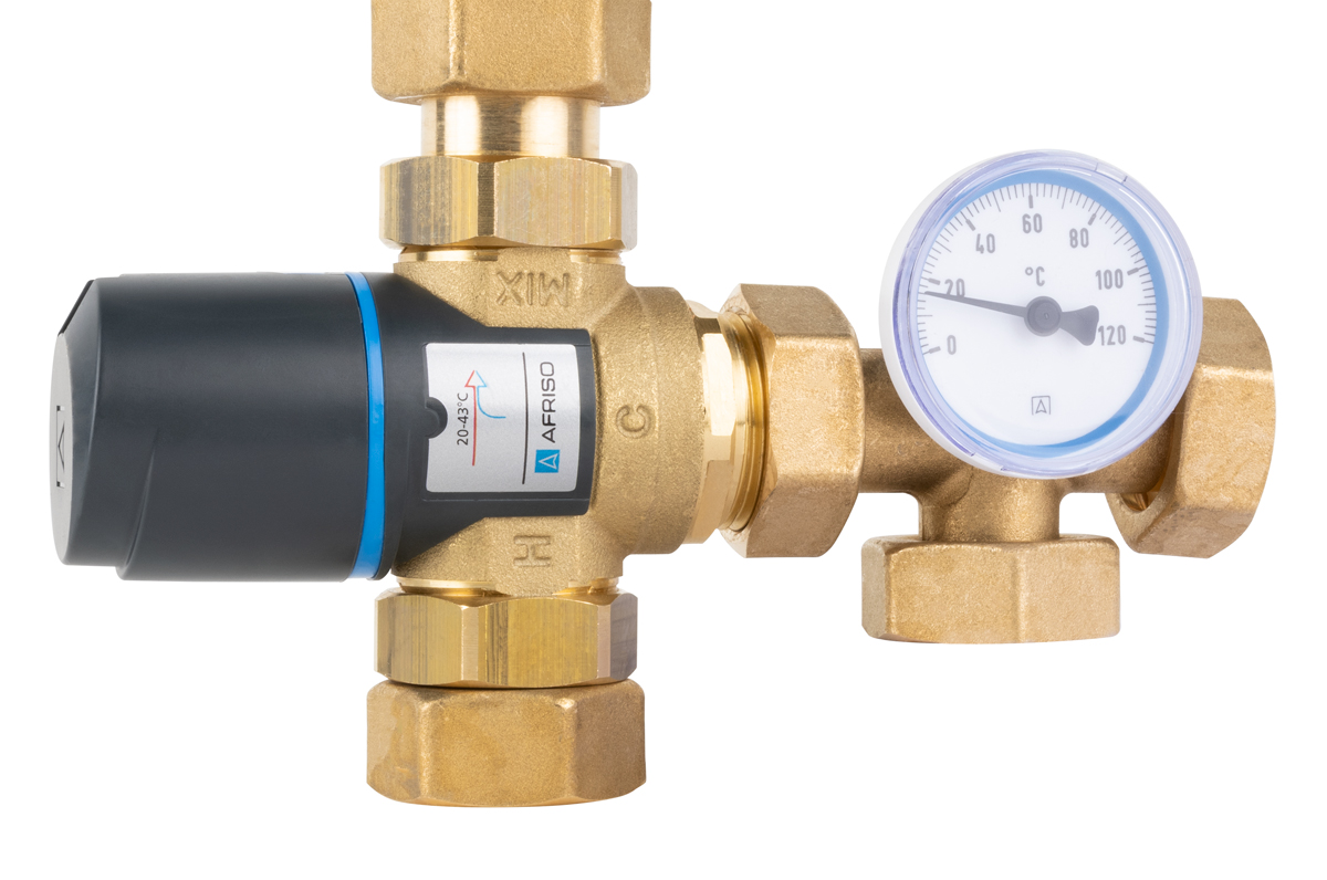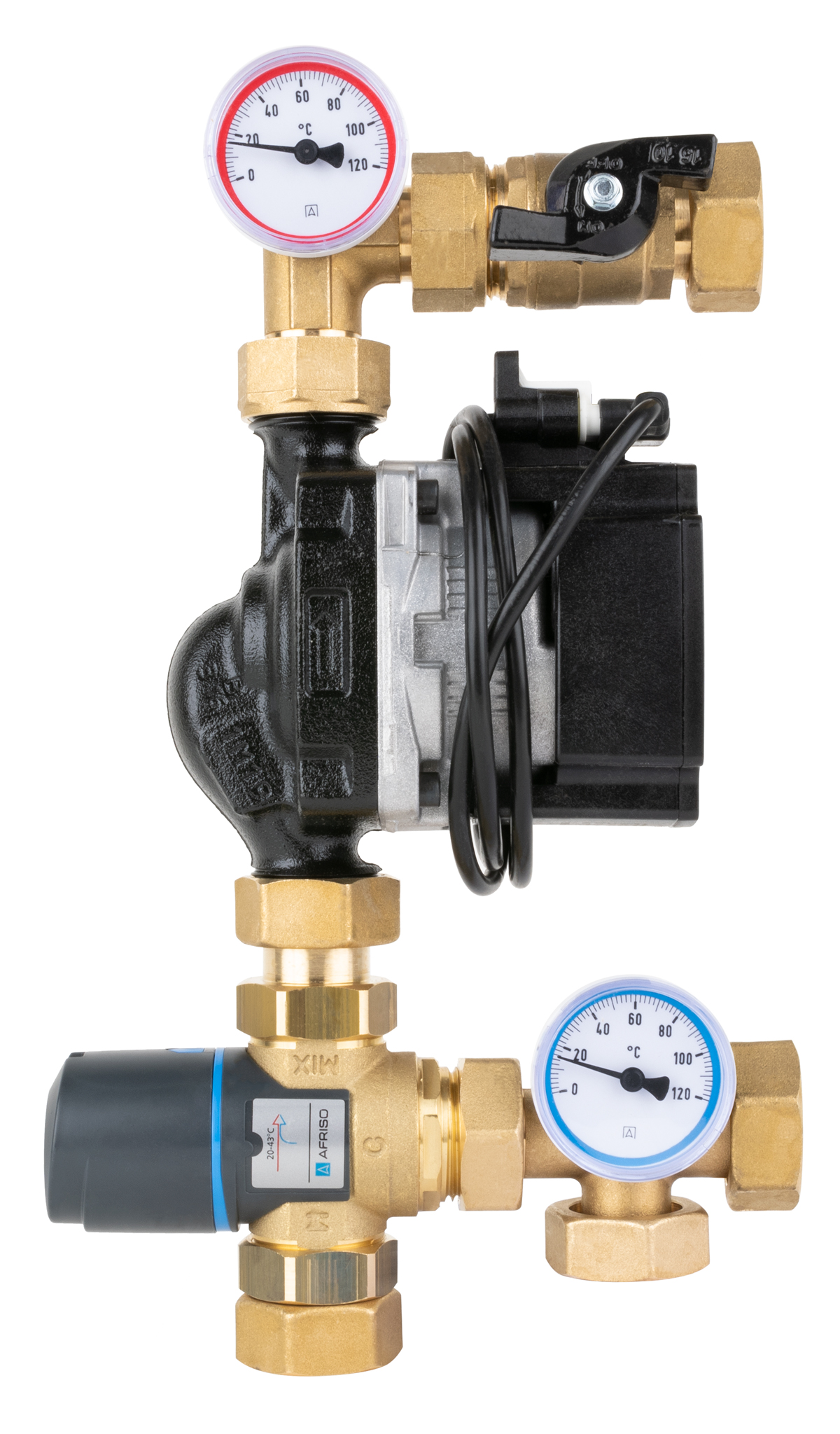 Grupa pompowa AFRISO BTU 501 nakrętka x nakrętka 1'' x 1'', z zaworem mieszającym, z pompą obiegową Grundfos UPM3 Auto