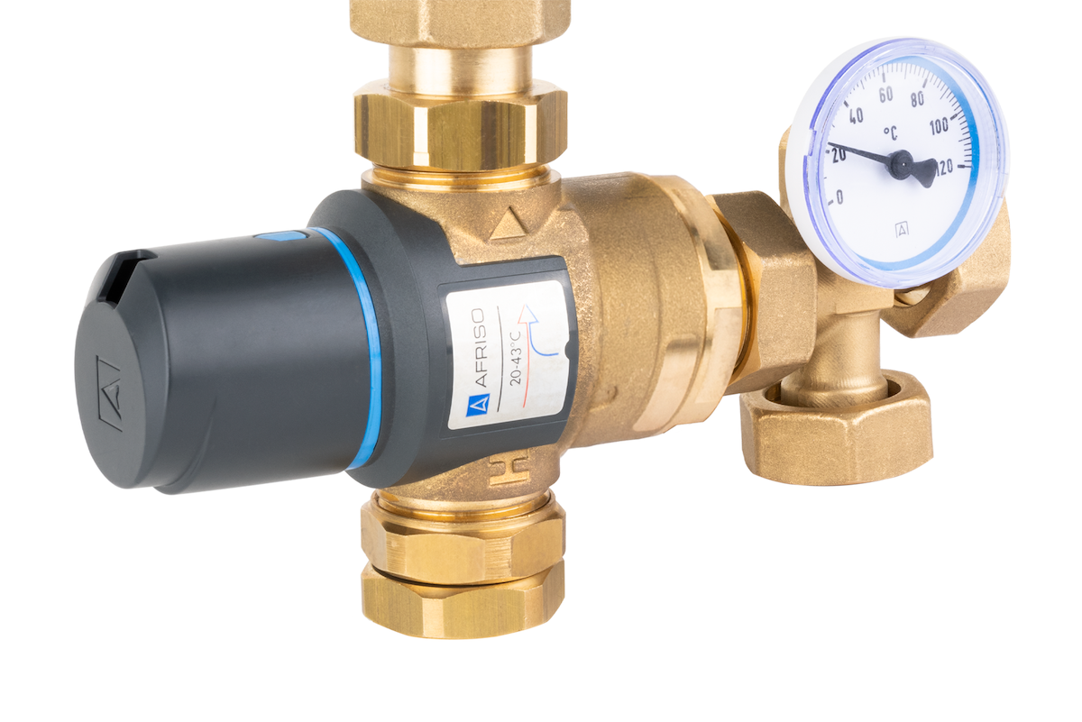 Grupa pompowa AFRISO BTU 502 AP nakrętka x nakrętka 1'' x 1'', z zaworem termostatycznym, z pompą obiegową AFRISO APH 160 15-7/130 mm