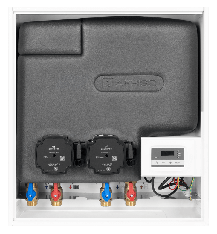 Grupa pompowa AFRISO PrimoBox AHB 622 GZ x GW 3/4'' x 3/4'', z zaworem termostatycznym, z izolacją, z pompą obiegową 2x Grunfos UPM3 Auto