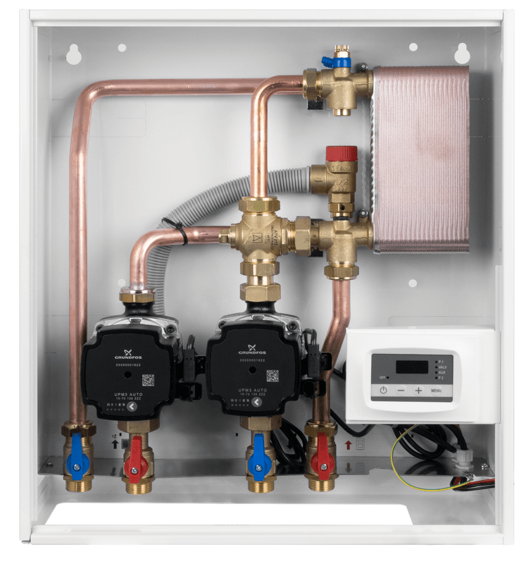 Stosowany do połączenia dwóch różnych źródeł ciepła poprzez oddzielanie ich obiegów za pomocą wymiennika płytowego.Montowany na lub w ścianie w pobliżu źródła ciepła.