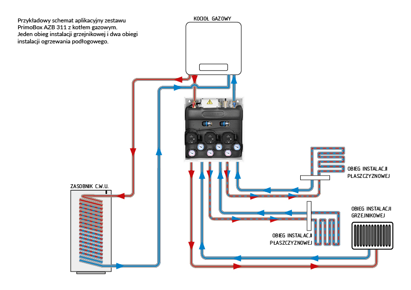 Opcjonalnie można połączyć go z zestawem separacyjnym **PrimoBox AHB** i stworzyć kolumnę grzewczą łączącą 2 źródła ciepła.
