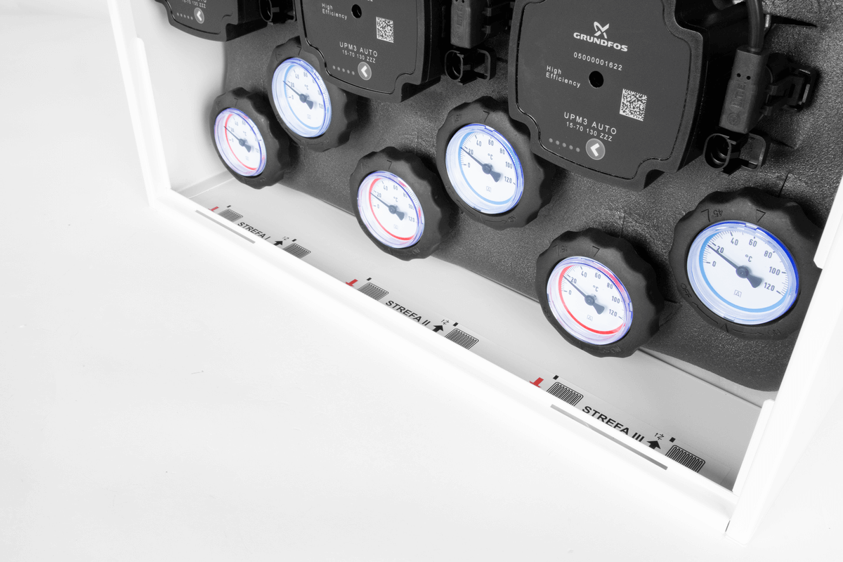 Pozwala na uzyskanie różnych temperatur zasilania obiegów grzewczych.