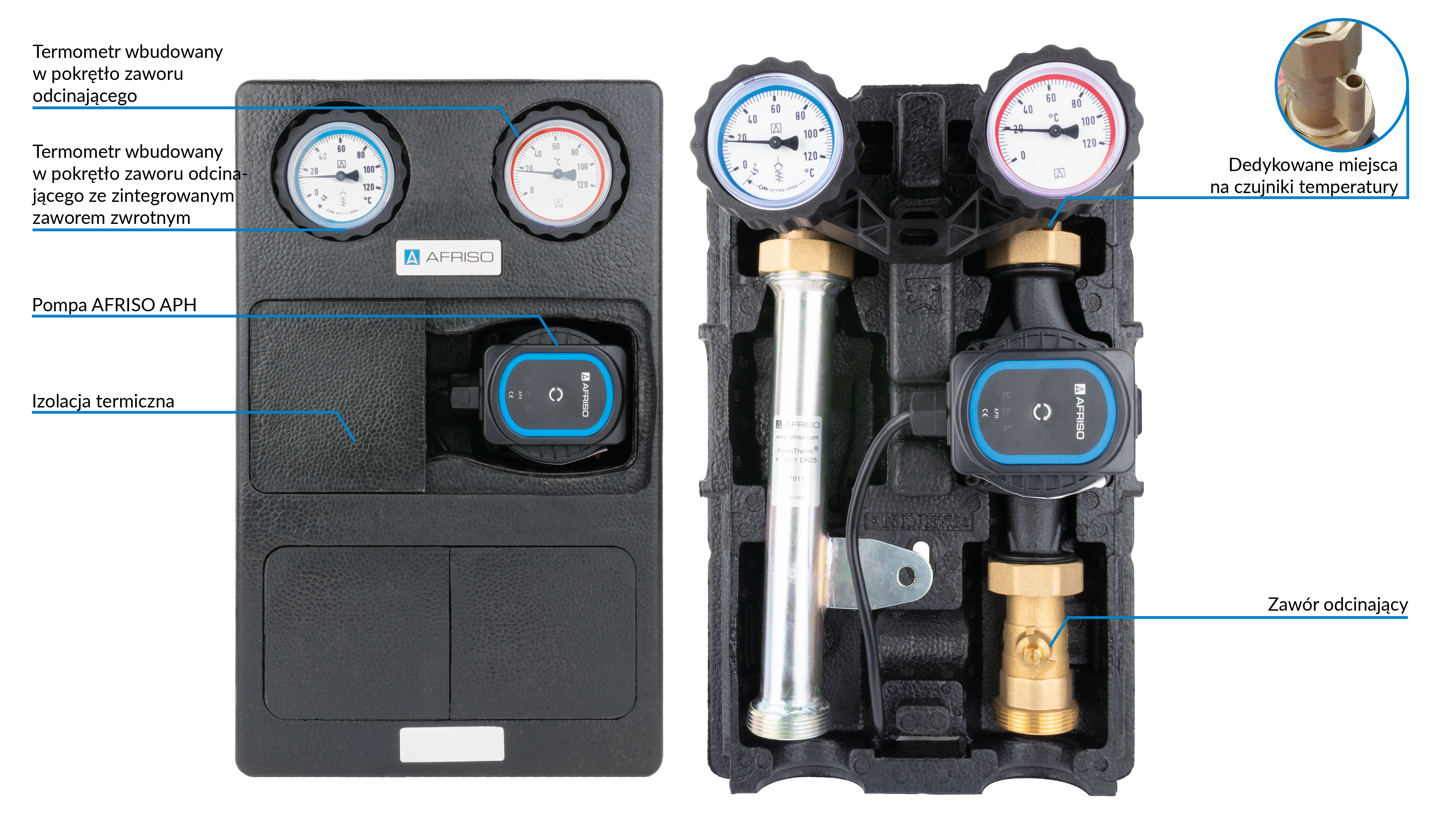 Grupa pompowa AFRISO PrimoTherm K 180-1 DN 25 AP GZ x GW 1 1/2'' x 1'', z izolacją, z pompą obiegową AFRISO APH 361 25-7/180 mm