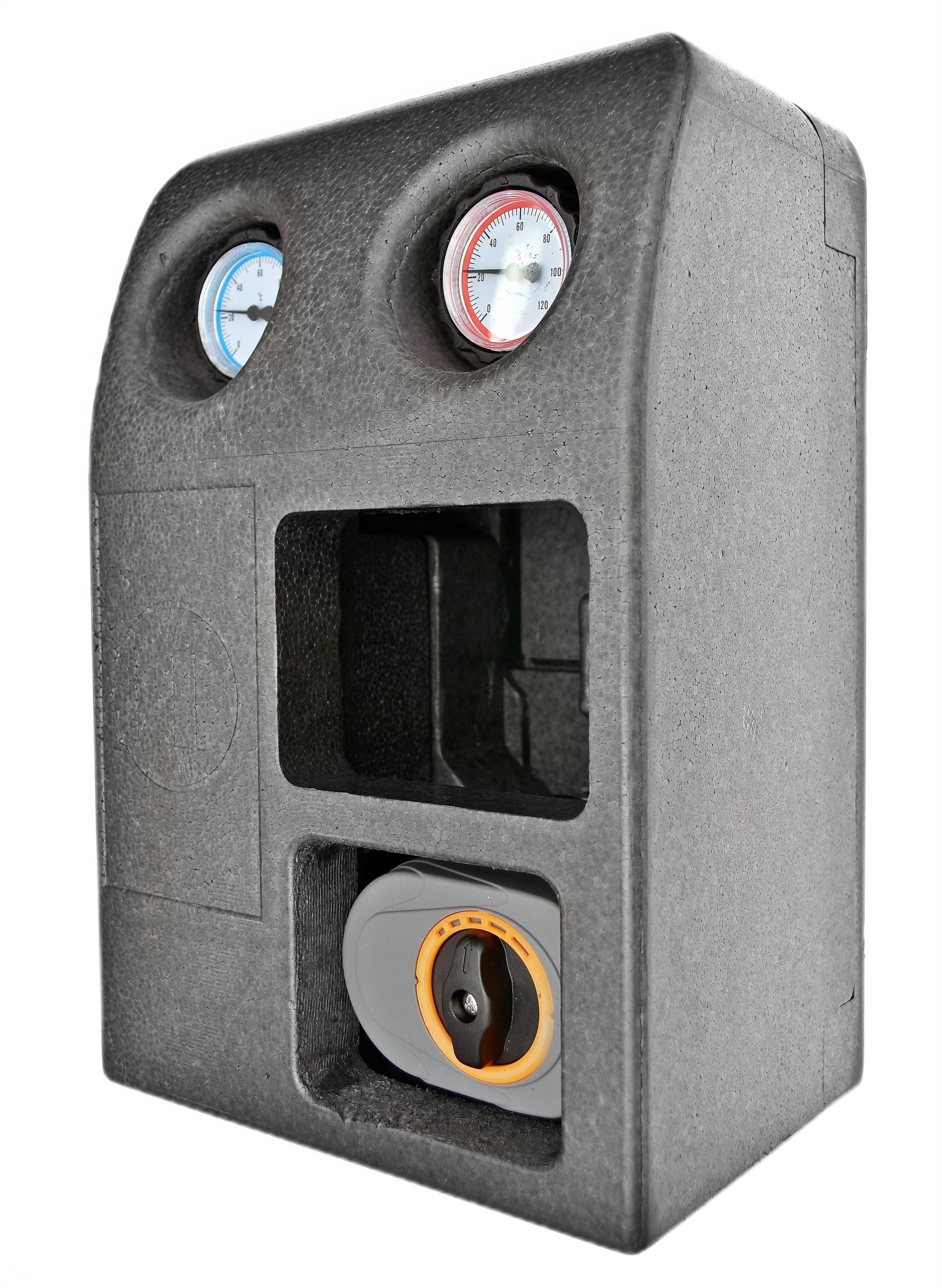 Grupy pompowe grzejnikowe QIK – bez pompy służą do dystrybucji czynnika grzewczego, w instalacjach centralnego ogrzewania. Stosowane są głównie do zasilania systemów grzewczych, bez konieczności obniżenia temperatury czynnika, dystrybuowanego ze źródła ciepła. Idealnie współpracują w połączeniu z rozdzielaczami hydraulicznymi QIK i sprzęgło-rozdzielaczami hydraulicznym. Wyposażenie: izolacja termiczna EPS, zawory z termometrami tarczowymi. Przyłącze 6/4” GZ, wyjście do instalacji 1” GW. Rozstaw przyłączy 125mm. Wymiary zewnętrzne: wysokość 375mm, szerokość 245mm, głębokość 173mm.