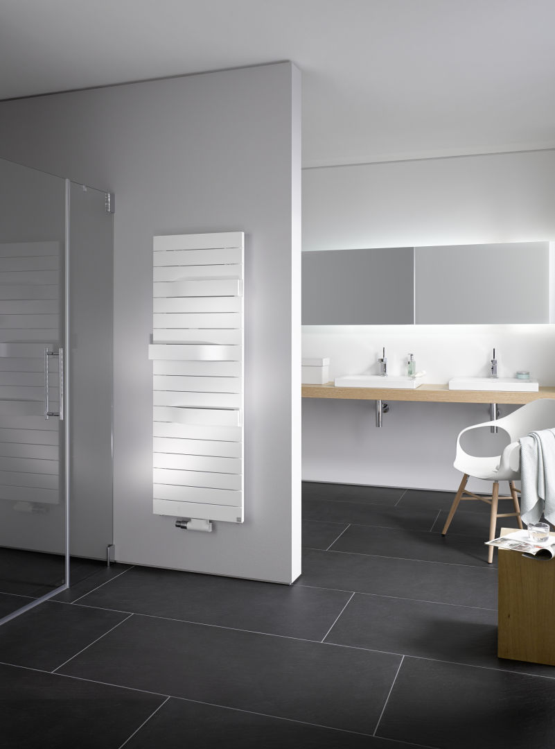 Symbioza piękna i komfortu. Grzejnik, który gwarantuje wysoki komfort cieplny i jednocześnie przekonuje wyglądem. Produkt wyróżniony w 2015 r. znakiem Design Plus powered by ISH. Tabeo spełnia wszystkie funkcjonalne wymagania i stanowi akcent w organizacji przestrzeni poprzez swój smukły zarys oraz precyzyjnie spojone ze sobą elementy. Dzięki dynamicznie zintegrowanym z formą wieszakom można na nim wygodnie zawieszać ręczniki do wysuszenia.