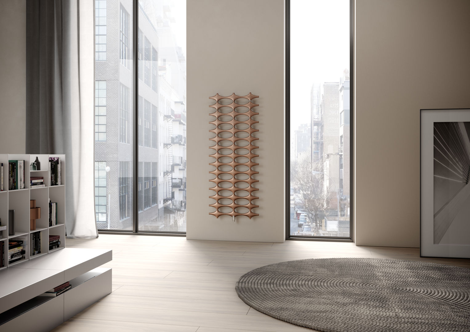 Unikatowe wzornictwo w elementarnej konstrukcji. Innowacyjność w zakresie techniki cieplnej czy wyjątkowa, designerska forma? Ideos z powodzeniem łączy obie te cechy. Gwiaździste elementy łączą się w fascynującą, jedyną w swoim rodzaju całość z naprzemienną grą przeciwieństw. Ideos jest subtelnie stonowany, jak i przyciągający wzrok. Ideos – to projekt przemyślany w każdym szczególe. Przykładowo, w wersji V jeden z segmentów przejmuje funkcję osłony, ukrywając przyłącze. Dodatkowo głowica termostatyczna jest perfekcyjnie zintegrowana z tym segmentem. Również w wersji kompaktowej mocowanie jest niewidoczne od strony przedniej.