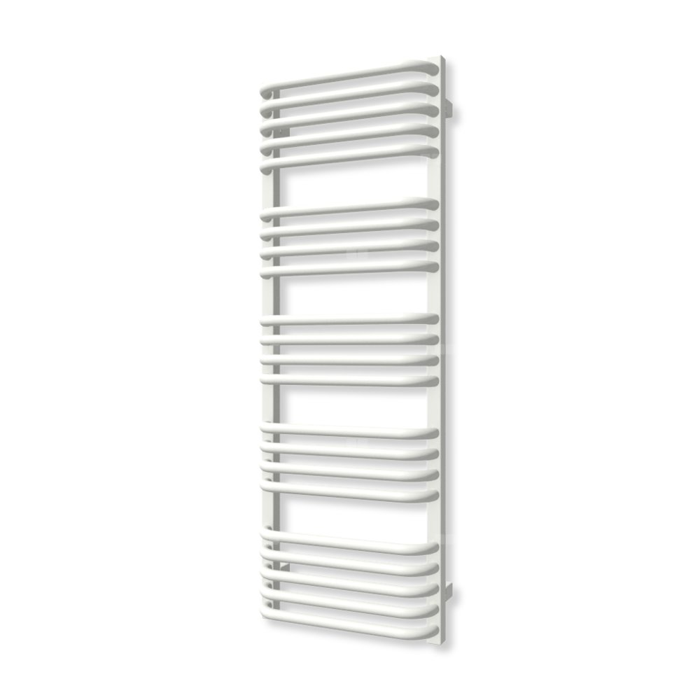Klasyczny grzejnik łazienkowy zbudowany z kolektorów o przekroju prostokąta połączonych za pomocą wygiętych rurek. Rurki typu "C" oraz zachowanie przestrzeni między sekcjami ułatwiają zawieszenie ręczników, dzięki czemu Alex dobrze sprawadza się zarówno w roli ogrzewacza pomieszczeń jak i suszarki.