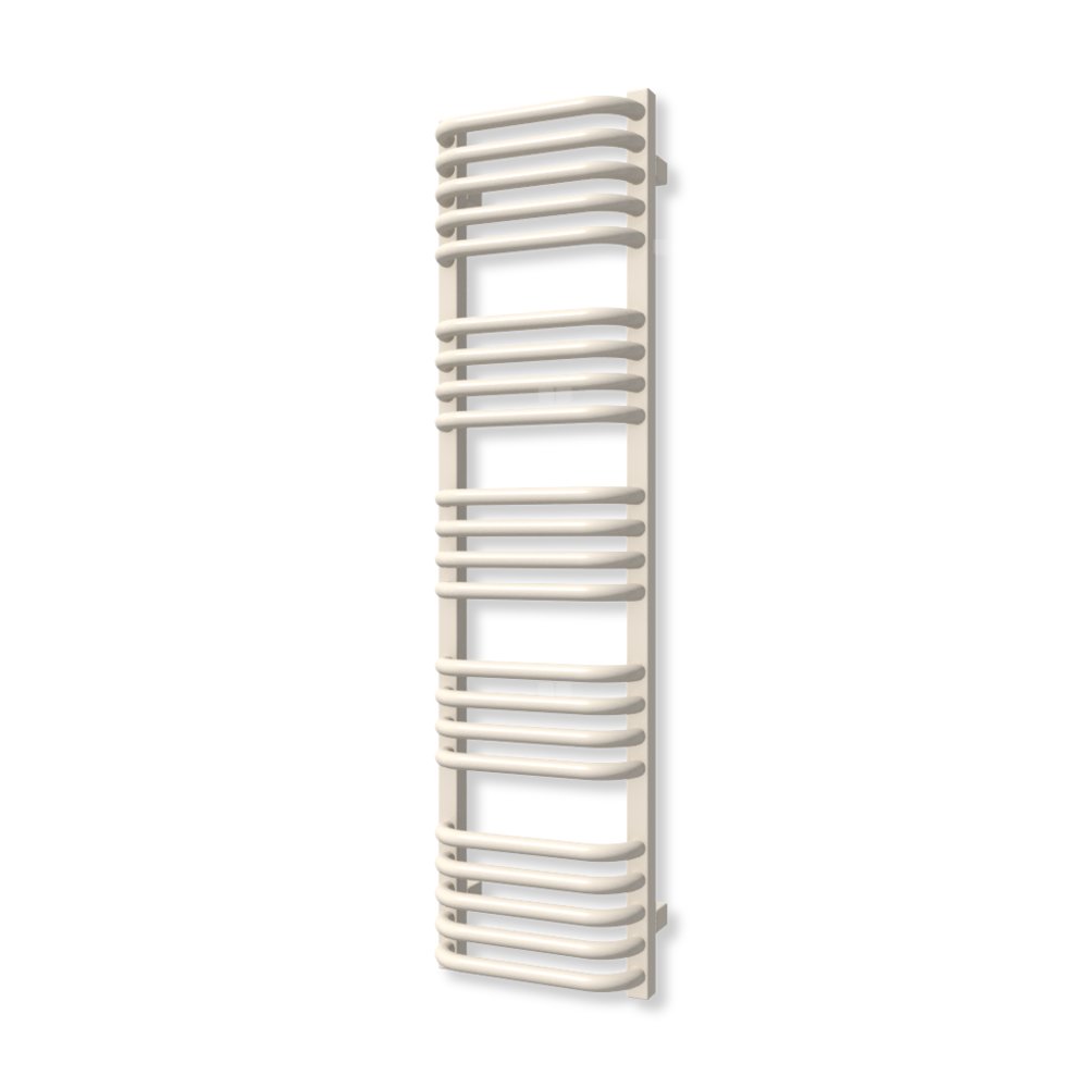 Klasyczny grzejnik łazienkowy zbudowany z kolektorów o przekroju prostokąta połączonych za pomocą wygiętych rurek. Rurki typu "C" oraz zachowanie przestrzeni między sekcjami ułatwiają zawieszenie ręczników, dzięki czemu Alex dobrze sprawadza się zarówno w roli ogrzewacza pomieszczeń jak i suszarki.
