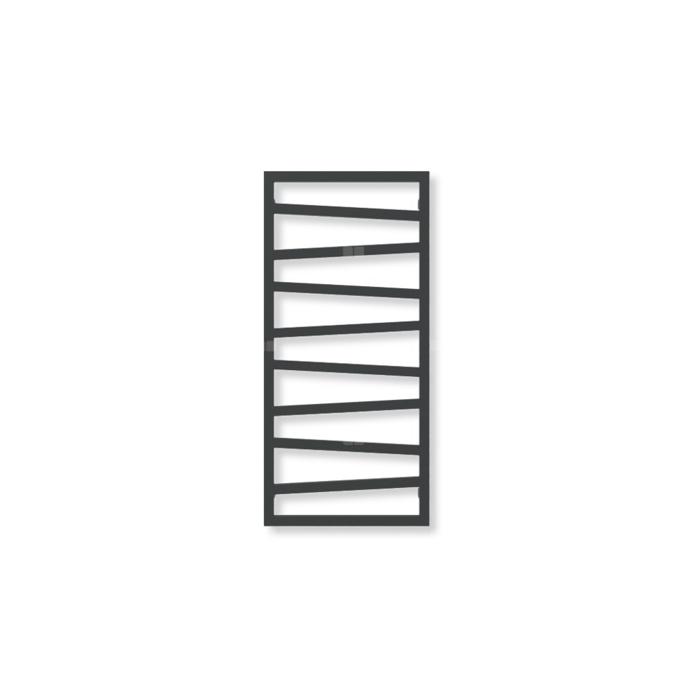 Nowoczesny grzejnik zbudowany ze zlicowanych ze sobą rur o przekroju kwadratu. Płaska forma o niesymetrycznie ułożonych profilach przyciąga wzrok i stanowi oryginalny element łazienki.