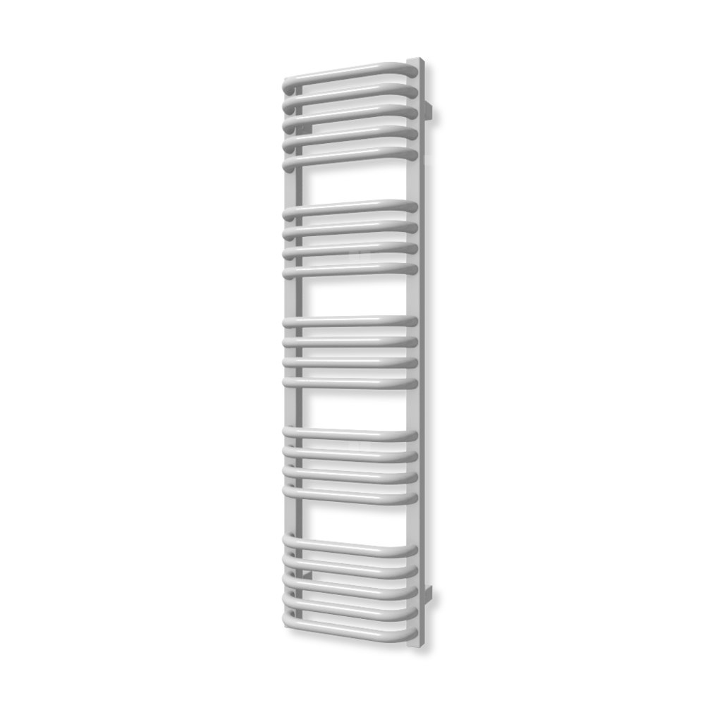 Klasyczny grzejnik łazienkowy zbudowany z kolektorów o przekroju prostokąta połączonych za pomocą wygiętych rurek. Rurki typu "C" oraz zachowanie przestrzeni między sekcjami ułatwiają zawieszenie ręczników, dzięki czemu Alex dobrze sprawadza się zarówno w roli ogrzewacza pomieszczeń jak i suszarki.