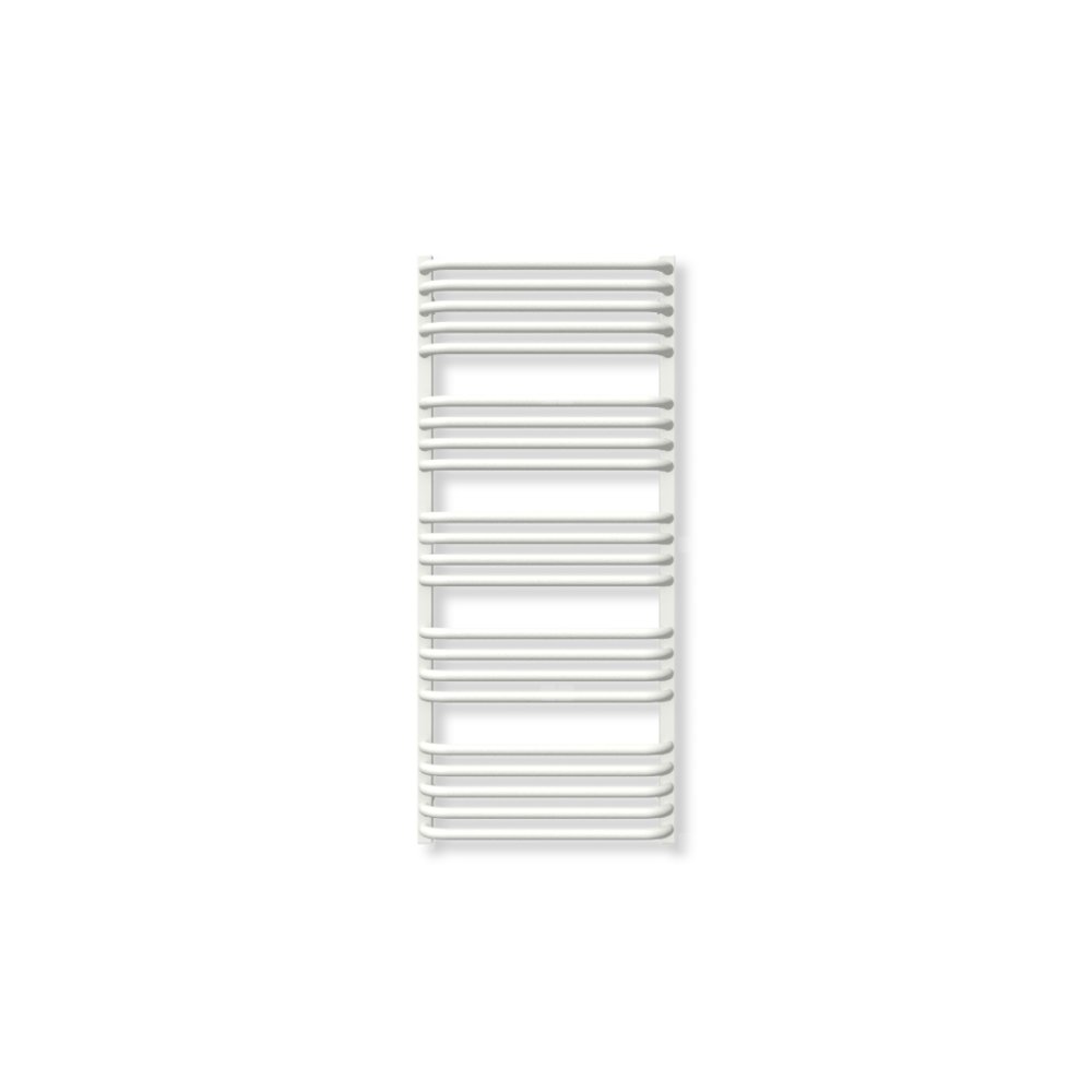 Klasyczny grzejnik łazienkowy zbudowany z kolektorów o przekroju prostokąta połączonych za pomocą wygiętych rurek. Rurki typu "C" oraz zachowanie przestrzeni między sekcjami ułatwiają zawieszenie ręczników, dzięki czemu Alex dobrze sprawadza się zarówno w roli ogrzewacza pomieszczeń jak i suszarki.