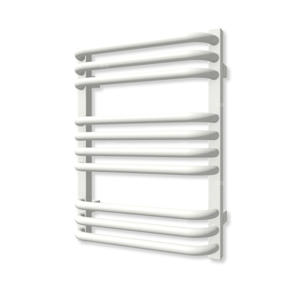 Klasyczny grzejnik łazienkowy zbudowany z kolektorów o przekroju prostokąta połączonych za pomocą wygiętych rurek. Rurki typu "C" oraz zachowanie przestrzeni między sekcjami ułatwiają zawieszenie ręczników, dzięki czemu Alex dobrze sprawadza się zarówno w roli ogrzewacza pomieszczeń jak i suszarki.
