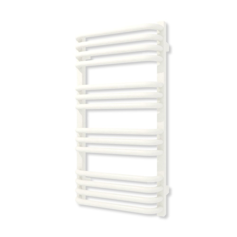 Klasyczny grzejnik łazienkowy zbudowany z kolektorów o przekroju prostokąta połączonych za pomocą wygiętych rurek. Rurki typu "C" oraz zachowanie przestrzeni między sekcjami ułatwiają zawieszenie ręczników, dzięki czemu Alex dobrze sprawadza się zarówno w roli ogrzewacza pomieszczeń jak i suszarki.