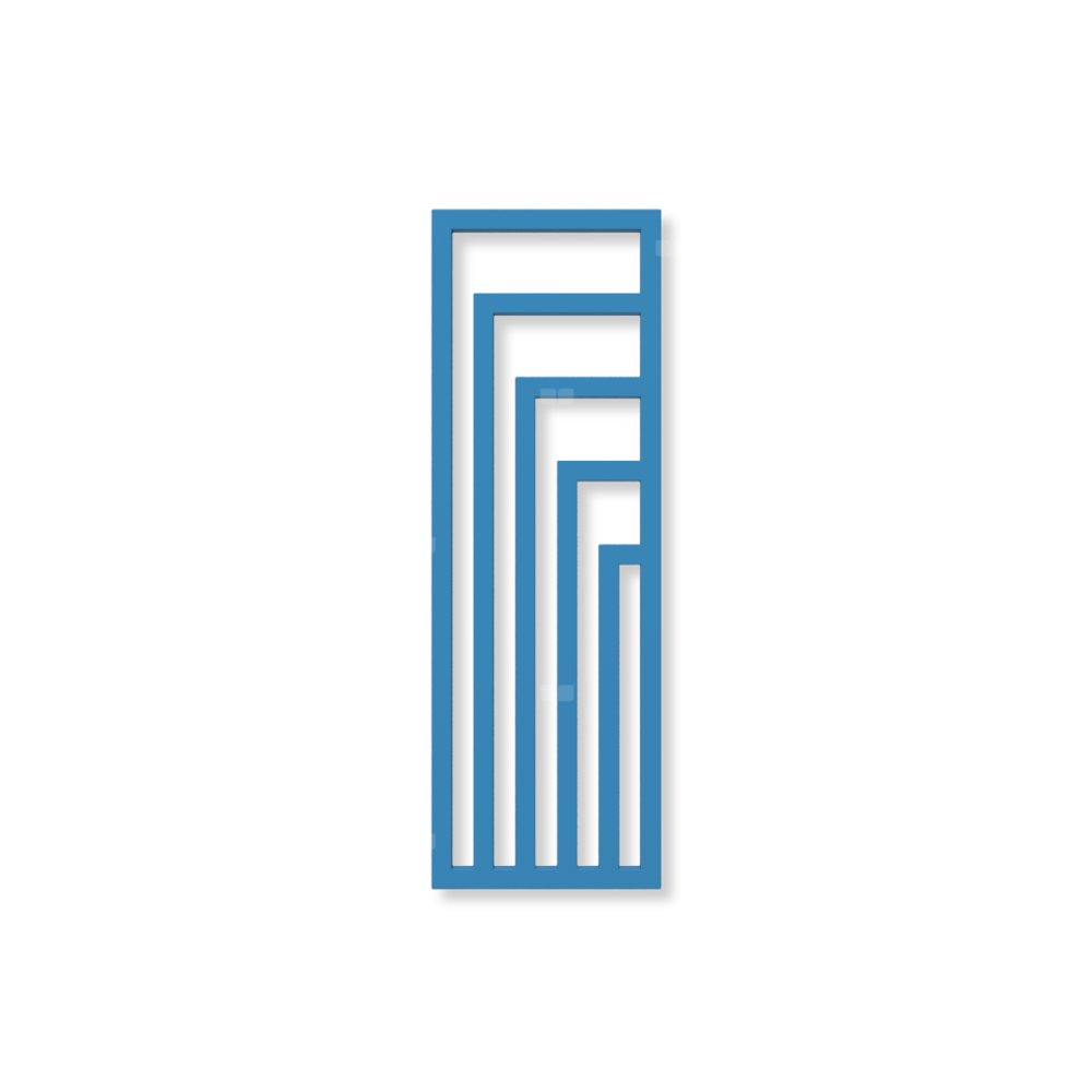 Grzejnik elektryczny TERMA ANGUS V 1300 x 440 mm, kolor niebieski średni RAL5015, moc 600 W, podłączenie E8, kabel spiralny z wtyczką biały