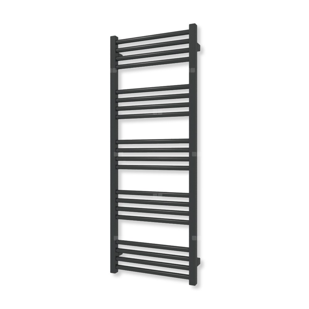 Grzejnik elektryczny TERMA FIONA 1140 x 430 mm, kolor czarny jak kruk mat RAL9005, moc 400 W, podłączenie E8, kabel prosty bez wtyczki z maskownicą czarny