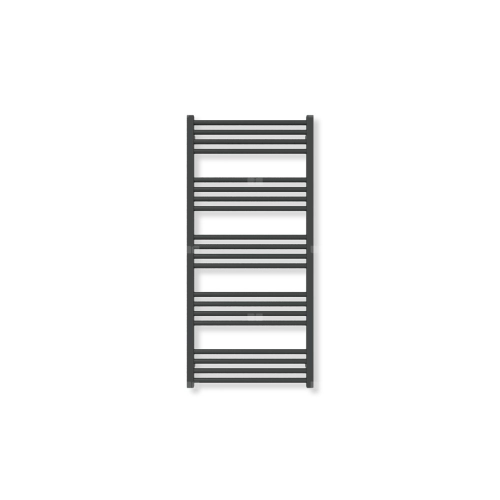 Grzejnik elektryczny TERMA FIONA 1140 x 530 mm, kolor czarny jak kruk soft, moc 600 W, podłączenie E8, kabel spiralny z wtyczką