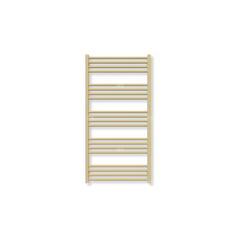 Grzejnik elektryczny TERMA FIONA 1140 x 580 mm, kolor mosiądz, moc 600 W, podłączenie E1, kabel spiralny z wtyczką żółty