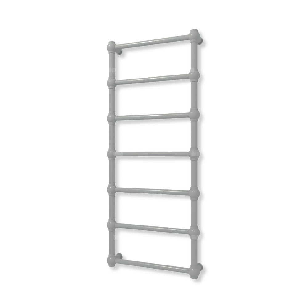 Bryła grzejnika została skonstuowana z rur o przekroju koła oraz stalowych kul. Całość tworzy formę charakterystyczną dla stylu retro.