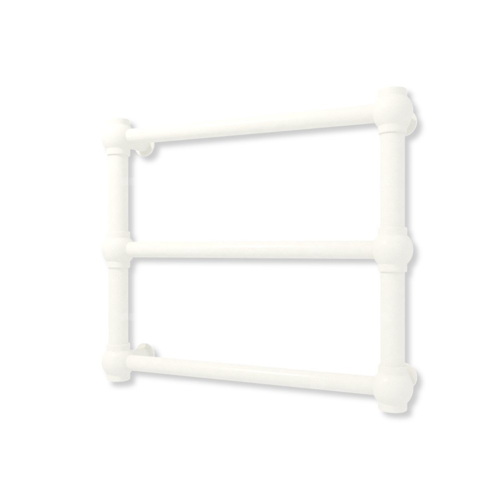 Bryła grzejnika została skonstuowana z rur o przekroju koła oraz stalowych kul. Całość tworzy formę charakterystyczną dla stylu retro.
