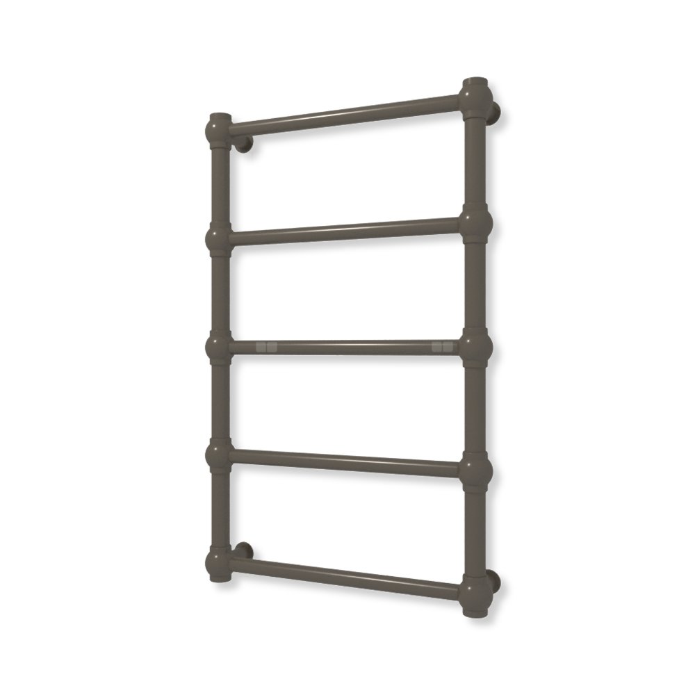 Bryła grzejnika została skonstuowana z rur o przekroju koła oraz stalowych kul. Całość tworzy formę charakterystyczną dla stylu retro.