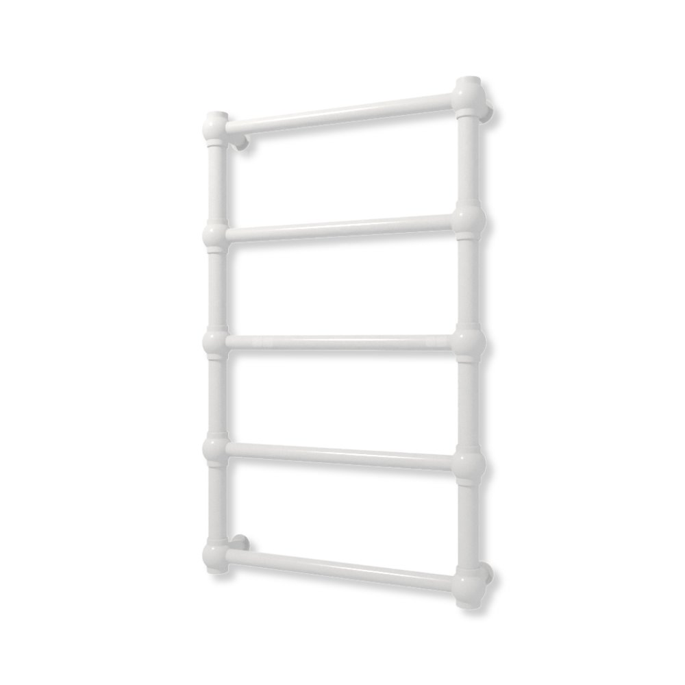 Bryła grzejnika została skonstuowana z rur o przekroju koła oraz stalowych kul. Całość tworzy formę charakterystyczną dla stylu retro.