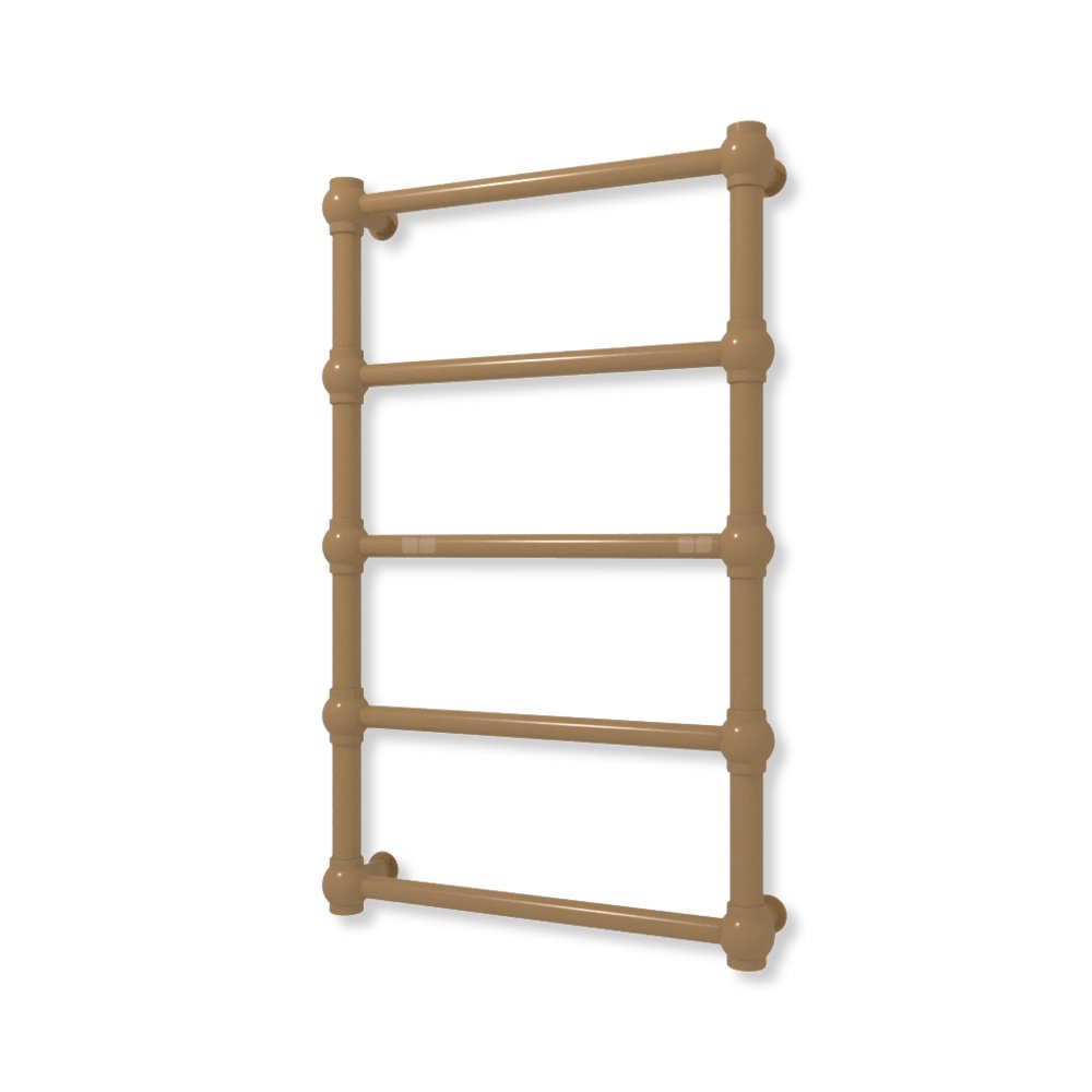 Bryła grzejnika została skonstuowana z rur o przekroju koła oraz stalowych kul. Całość tworzy formę charakterystyczną dla stylu retro.