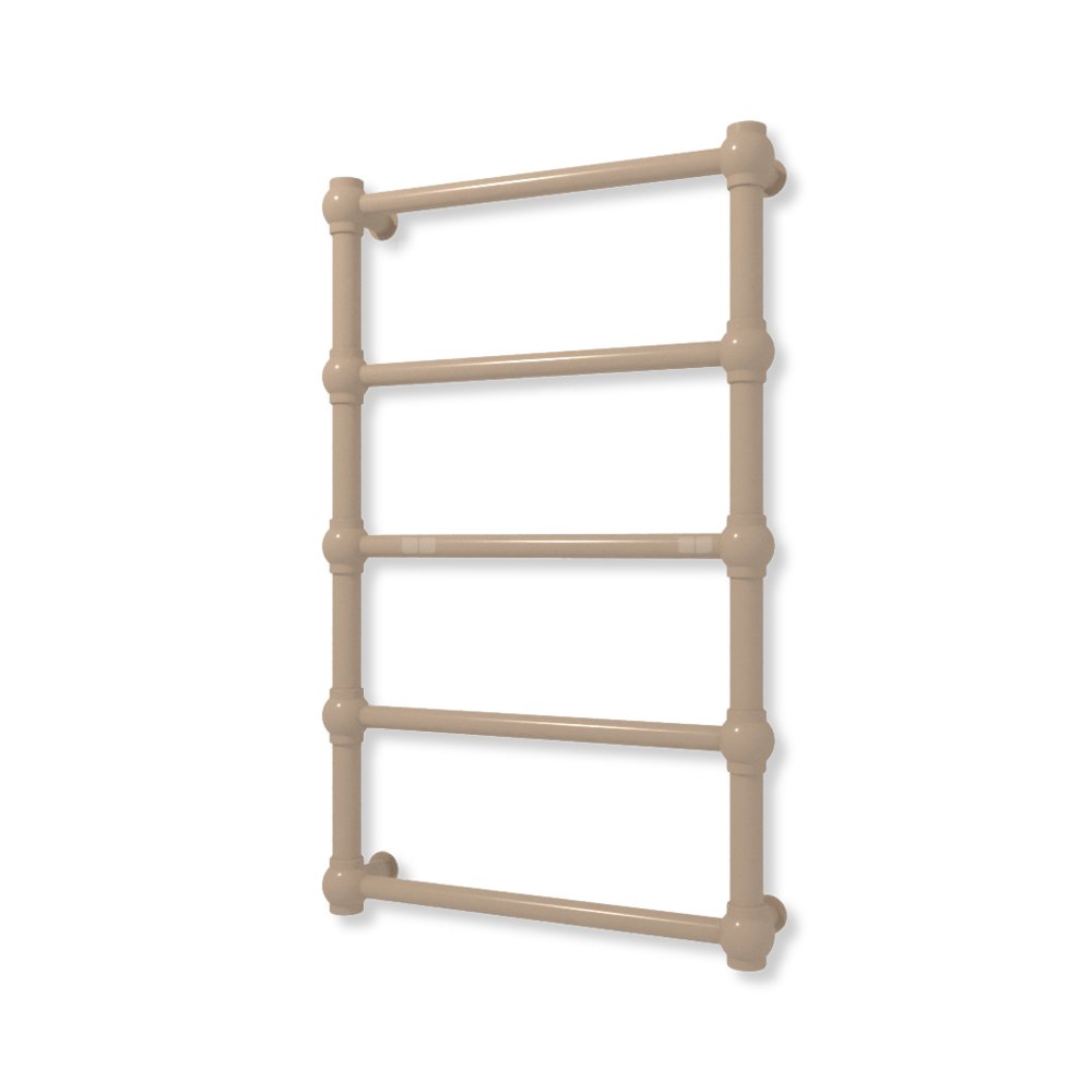 Bryła grzejnika została skonstuowana z rur o przekroju koła oraz stalowych kul. Całość tworzy formę charakterystyczną dla stylu retro.