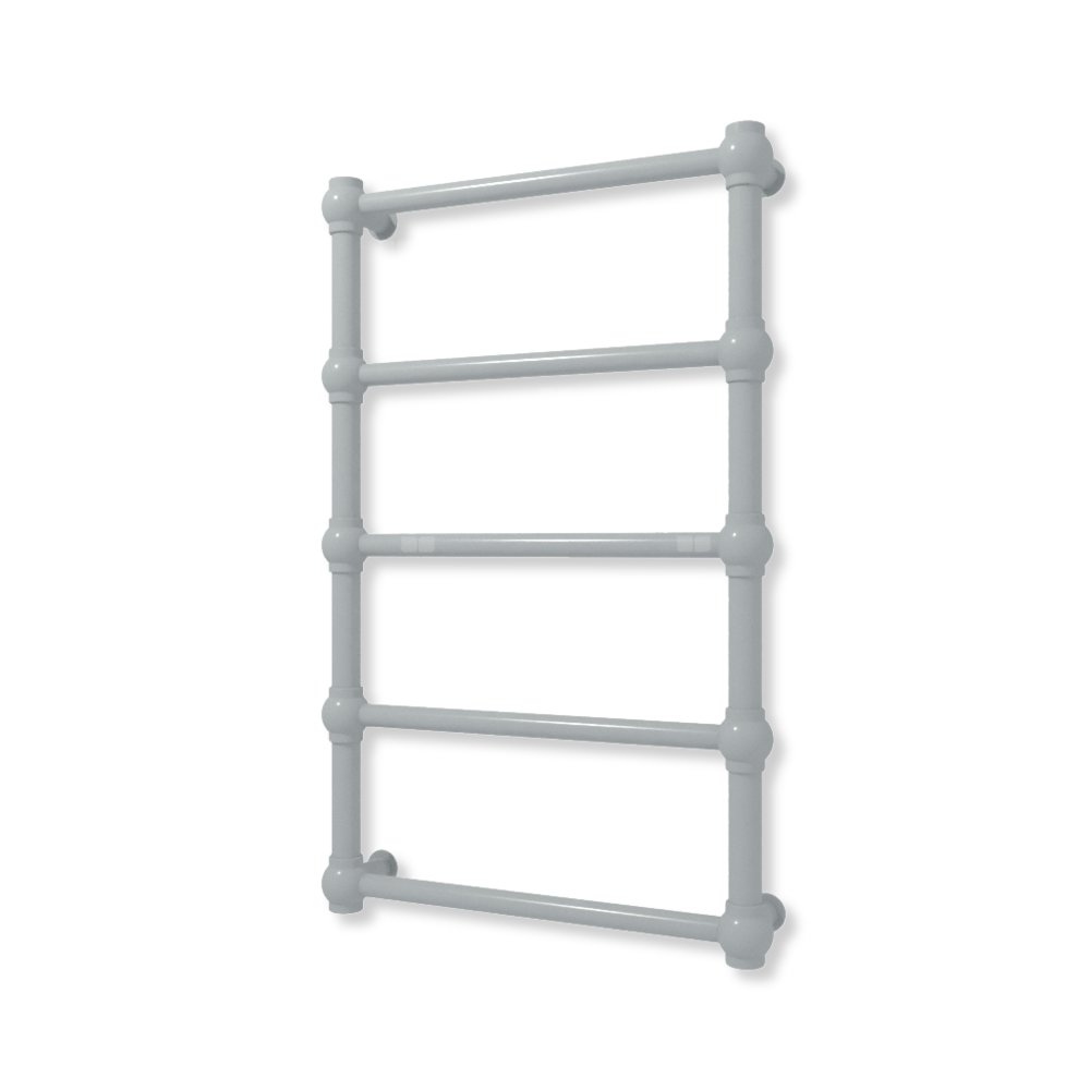 Bryła grzejnika została skonstuowana z rur o przekroju koła oraz stalowych kul. Całość tworzy formę charakterystyczną dla stylu retro.