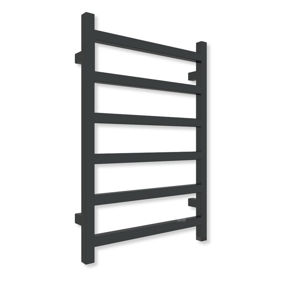 Grzejnik elektryczny TERMA SIMPLE ONE 720 x 500 mm, kolor czarny jak kruk mat RAL9005, moc 300 W, podłączenie E8, kabel spiralny z wtyczką szary