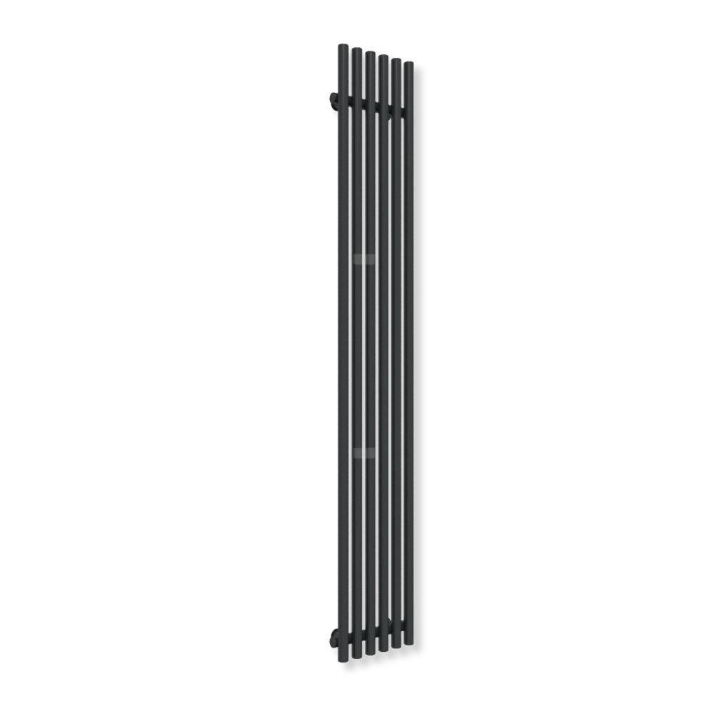Grzejnik elektryczny TERMA TUNE VWS E 1800 x 290 mm, kolor czarny jak kruk mat RAL9005, moc 600 W, podłączenie E8, kabel prosty bez wtyczki z maskownicą czarny