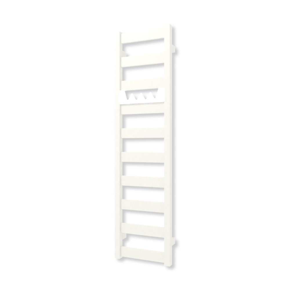 Zbudowana z płaskich rurek forma dobrze odnajdzie się w nowoczesnych wnętrzach. VIVO dostępny jest w wielu różnych rozmiarach, również bardzo wąskich o szerokości zaledwie 30 cm, które świetnie sprawdzą się w małych łazienkach. Specjalnie zaprojektowane do tego modelu wieszaki HAPPY zwiększają funkcjonalność grzejnika, jednocześnie nadając całości unikatowego  spersonalizowanego charakteru. Do wyboru wieszaki HAPPY SHARK, HAPPY HIPPO oraz HAPPY RABBIT, który polecamy szczególnie do dziecięcych łazienek. Wieszak można w łatwy sposób zamontować i zdemontować.