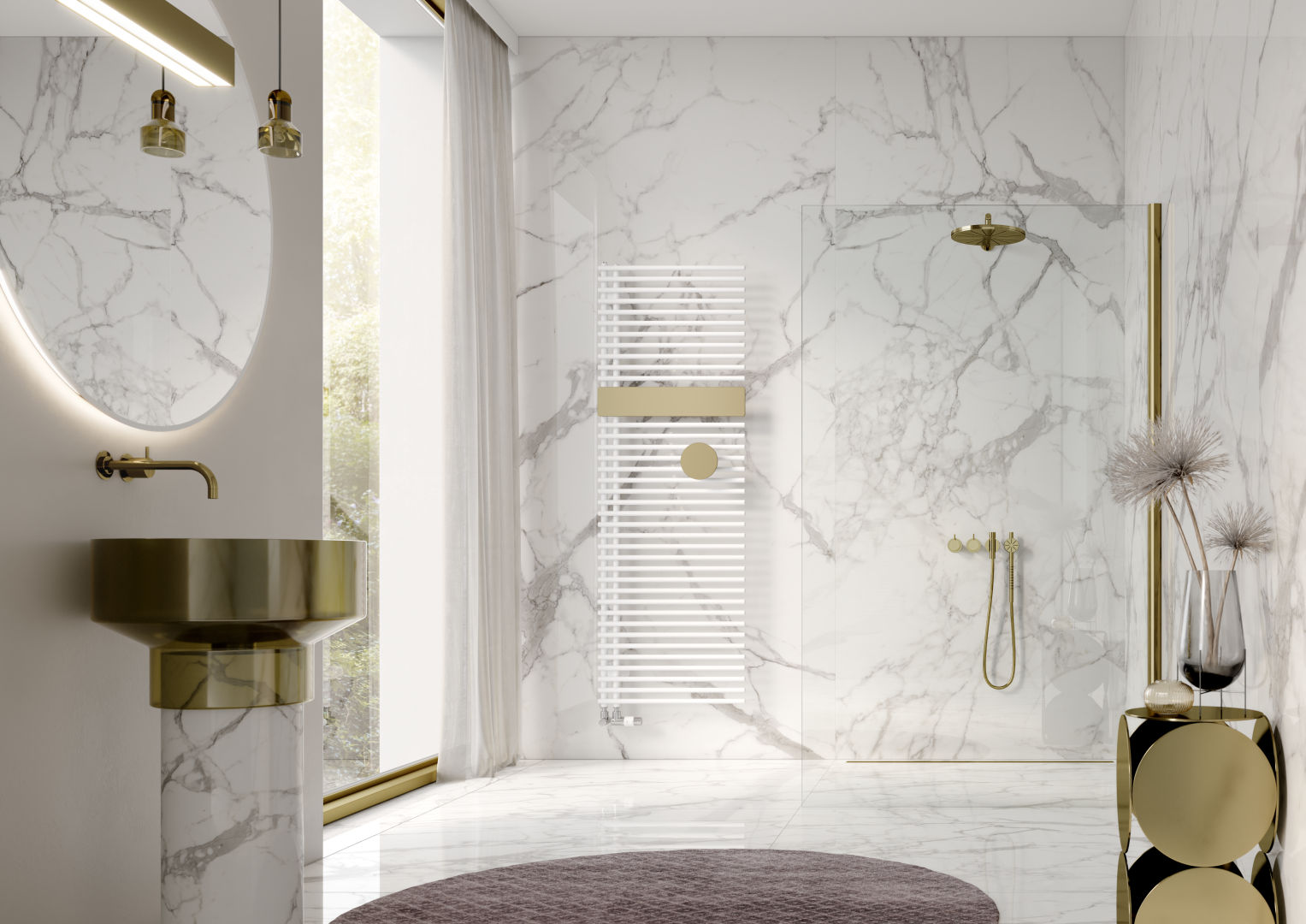 Asymetryczna forma otwarta z  jednej strony odgrywa istotną rolę podczas użytkowania grzejnika do wieszania i podgrzewania ręczników. Rury grzewcze zostały rozmieszczone w  równych odstępach i  zaprojektowane specjalnie z  myślą o  wieszaniu ręczników. Element dekoracyjny ze stali lub drewna umożliwia tworzenie indywidualnych koncepcji materiałowych i  kolorystycznych. Nowością jest przede wszystkim poziomy element dekoracyjny. Nadaje on znanemu już kształtowi grzejnika Credo Half round odświeżony wygląd i  umożliwia tworzenie stylowych, innowacyjnych połączeń naturalnego drewna i  stalowego grzejnika.