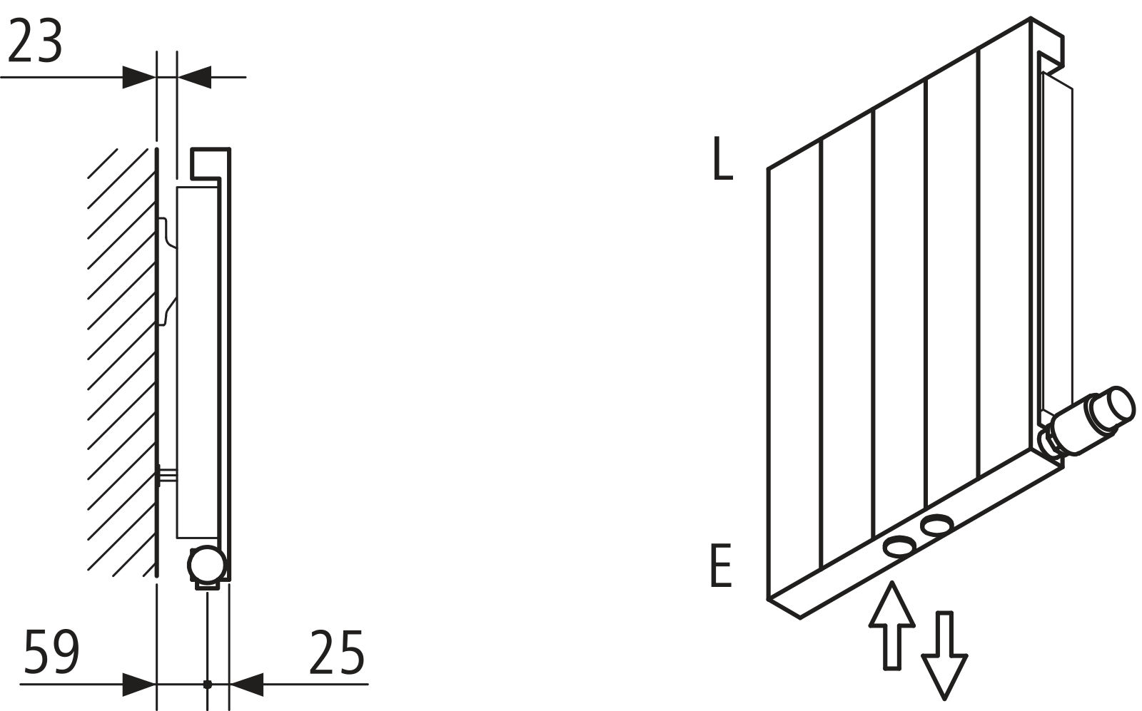 Pionowe, smukłe wykonanie – estetycznie wykończone za pomocą standardowo montowanej bocznej osłony lub idealne dostosowanie w wersji poziomej – z elegancką osłoną lub bez.