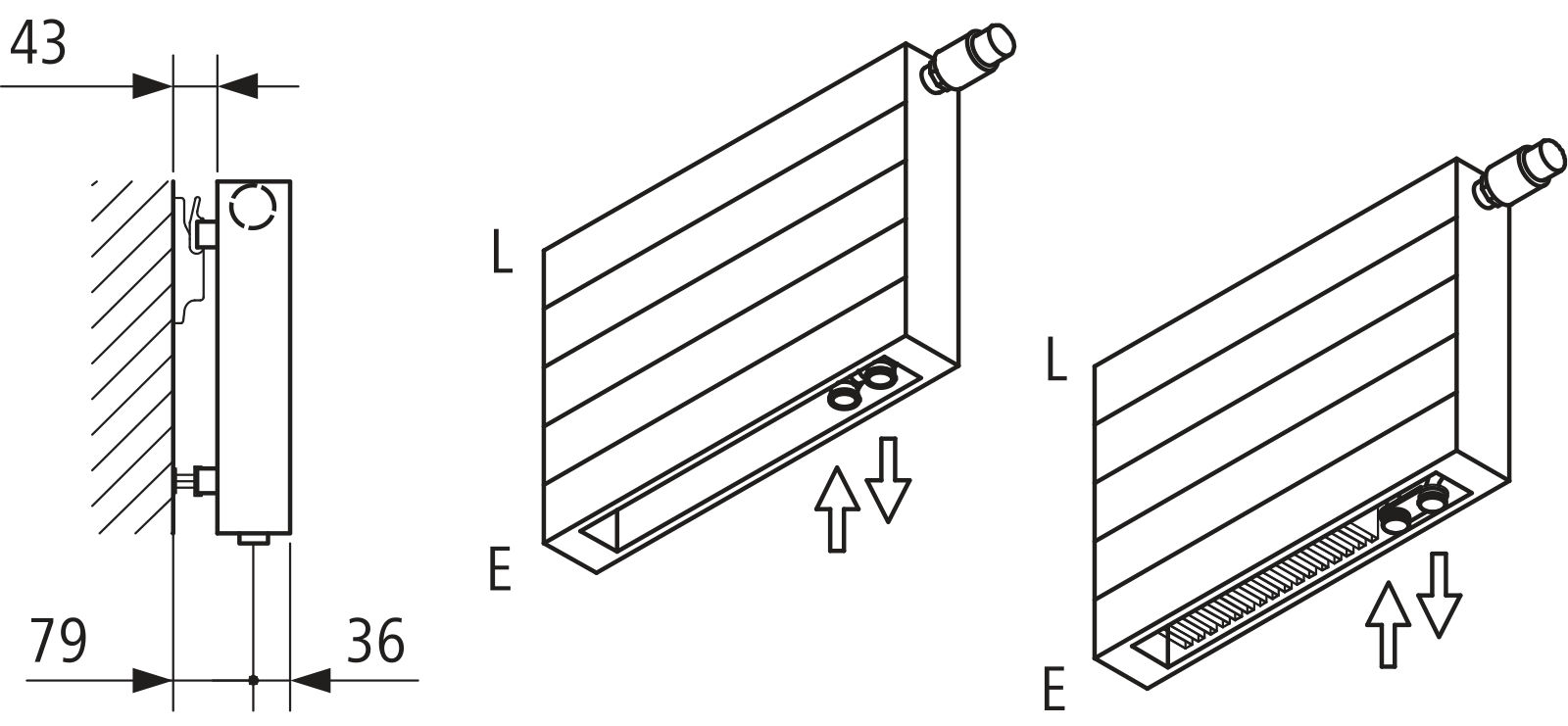 Pionowe, smukłe wykonanie – estetycznie wykończone za pomocą standardowo montowanej bocznej osłony lub idealne dostosowanie w wersji poziomej – z elegancką osłoną lub bez.