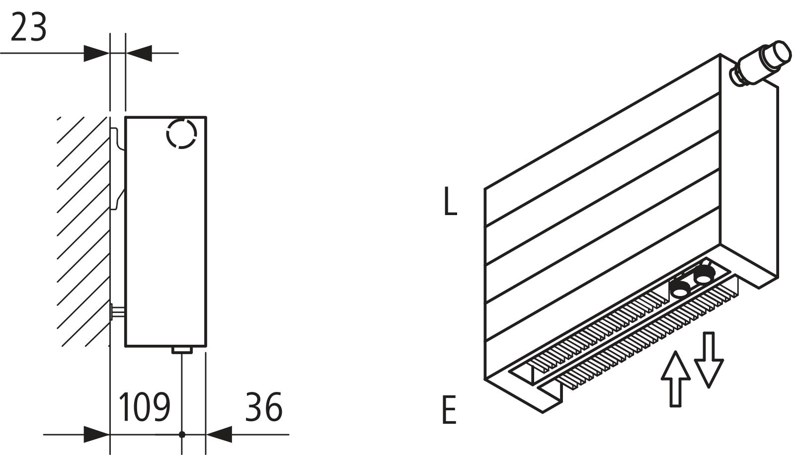 Pionowe, smukłe wykonanie – estetycznie wykończone za pomocą standardowo montowanej bocznej osłony lub idealne dostosowanie w wersji poziomej – z elegancką osłoną lub bez.