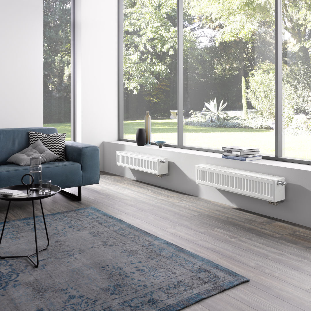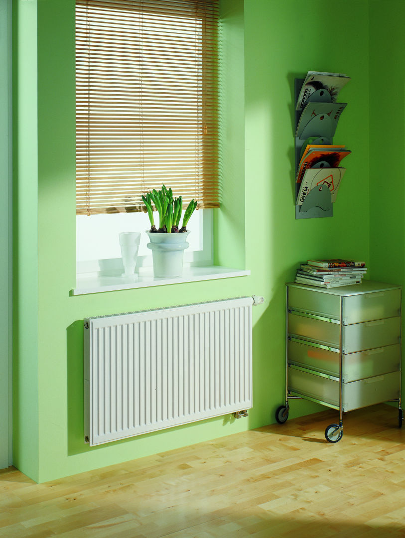 Grzejnik zaworowy Kermi jest podłączany od dołu z boku. Wkładka zaworowa ze wstępnie nastawionymi wartościami kv w grzejnikach zaworowych jest montowana fabrycznie.