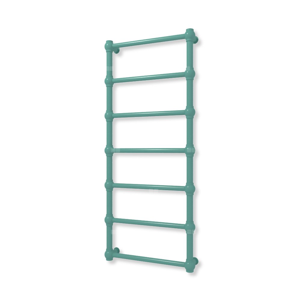 Bryła grzejnika została skonstuowana z rur o przekroju koła oraz stalowych kul. Całość tworzy formę charakterystyczną dla stylu retro.