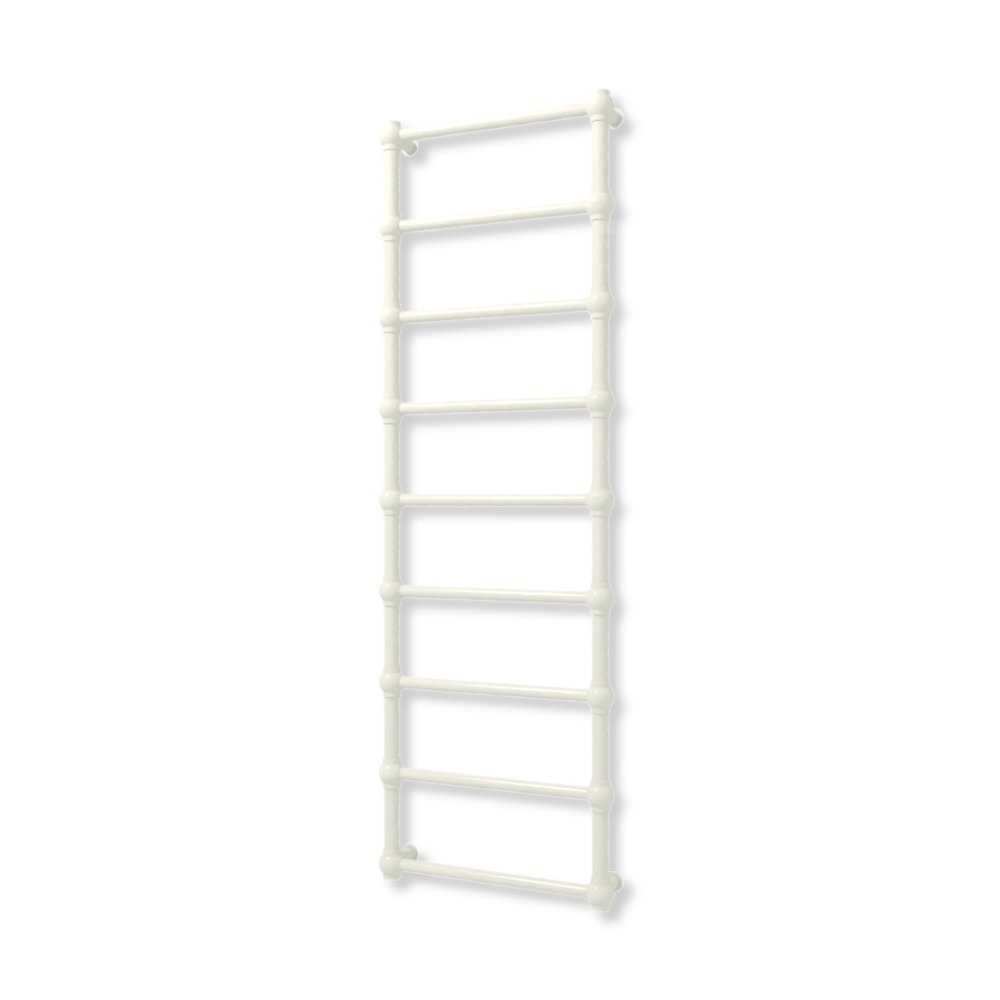 Bryła grzejnika została skonstuowana z rur o przekroju koła oraz stalowych kul. Całość tworzy formę charakterystyczną dla stylu retro.