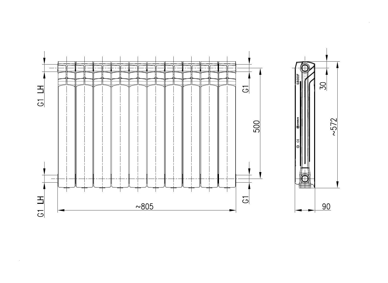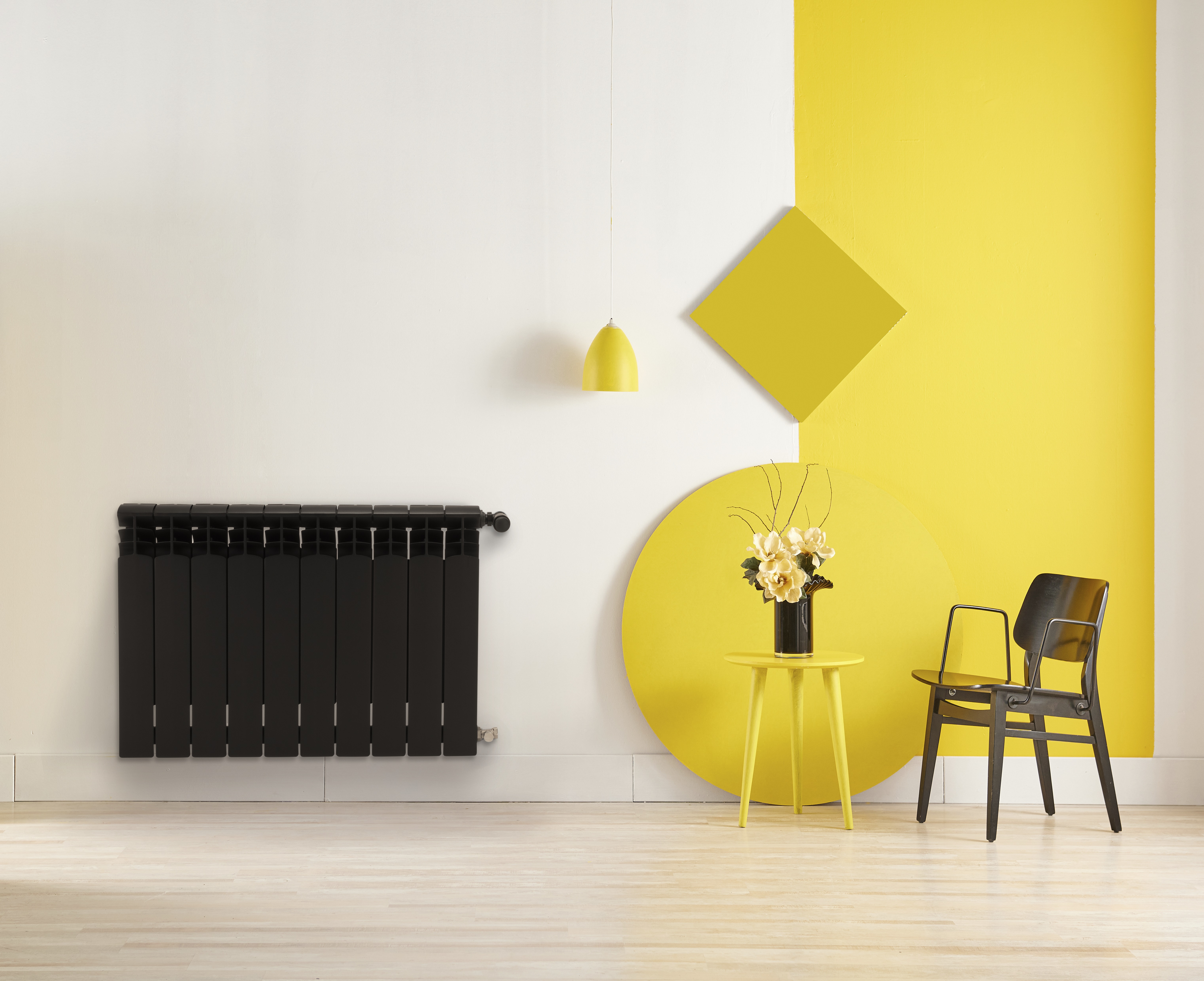 Grzejnik żeberkowy KFA Armatura G500F aluminium, podłączenie boczne 572 x 805 mm, kolor czarny (RAL 9005)