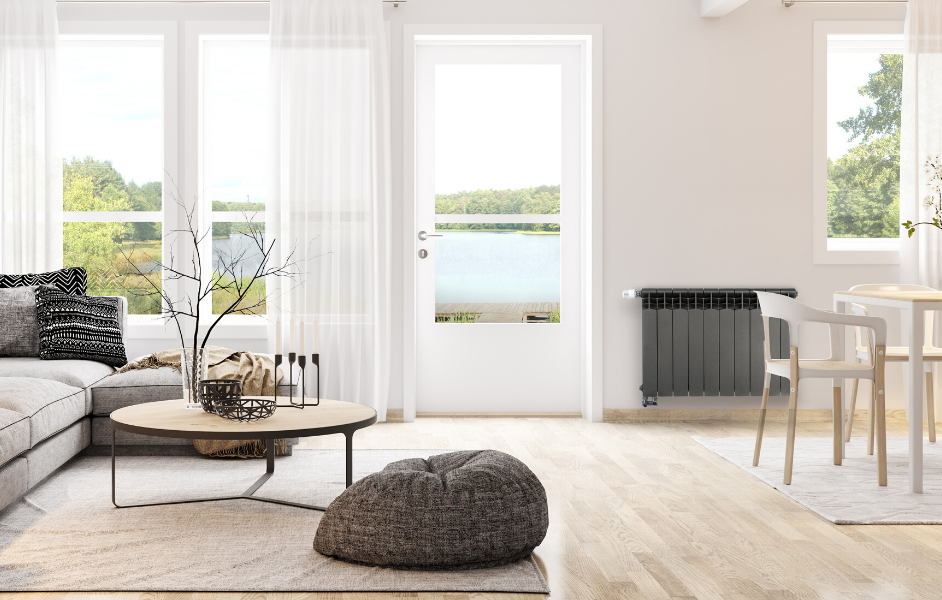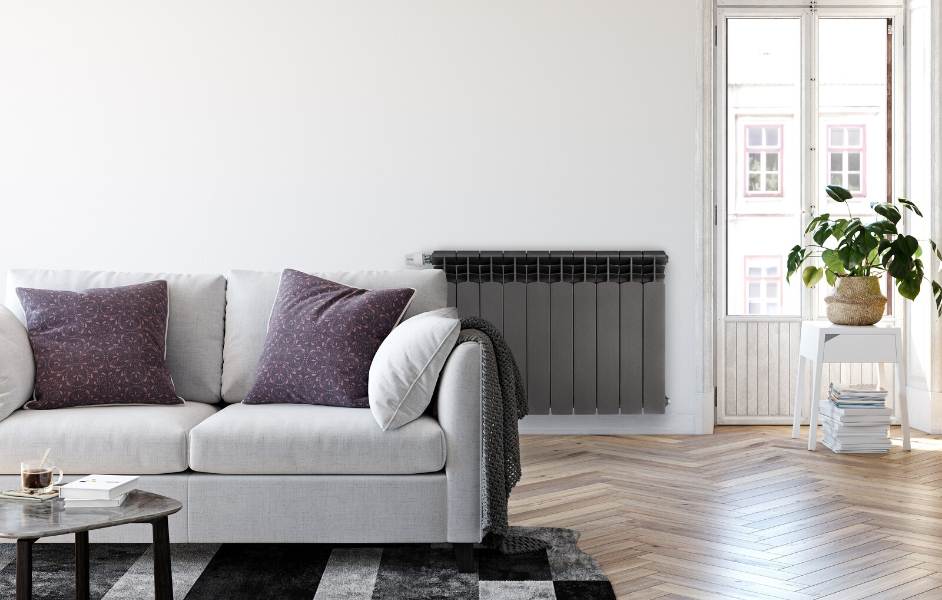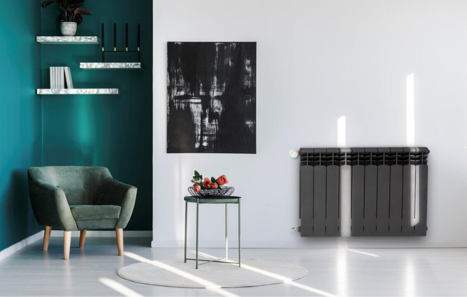 Grzejnik żeberkowy KFA Armatura G500F aluminium, podłączenie boczne 572 x 805 mm, kolor grafit (RAL 9007)