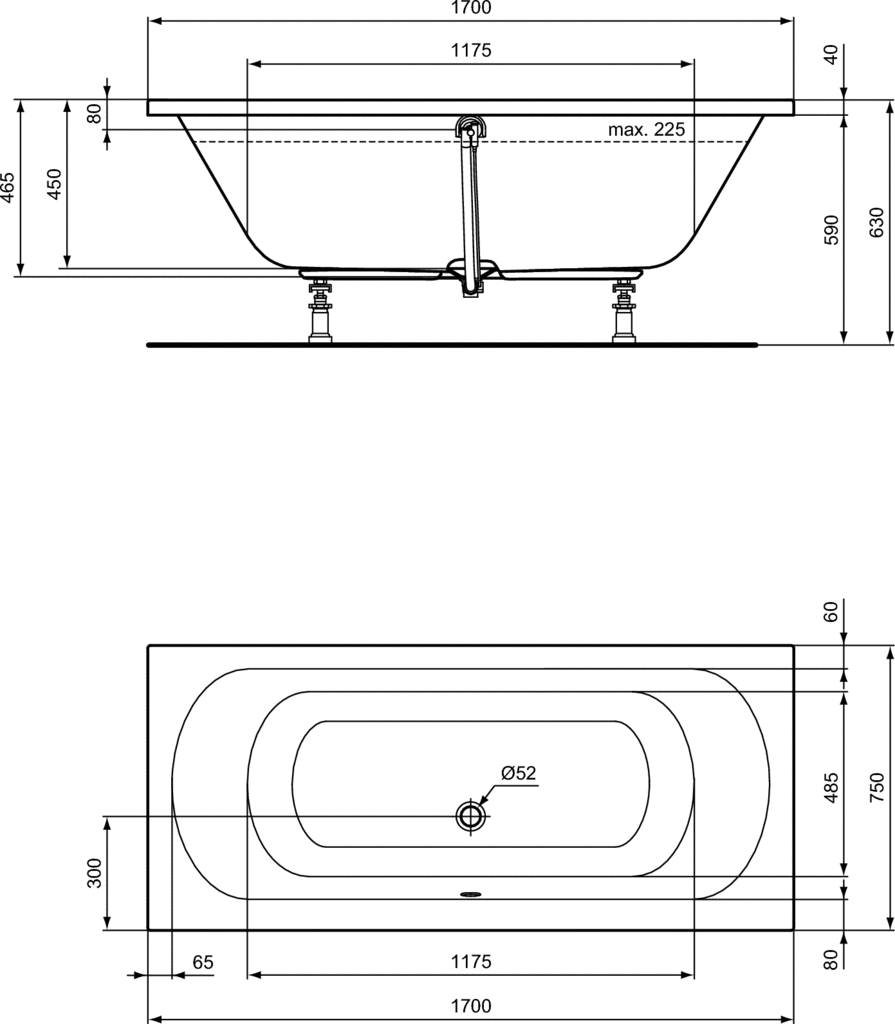 Wanna wykonana z wysokiej jakości akrylu sanitarnego gr 4 mm. Pojemność wanny 225 l. DIN EN 263. DIN EN 14 516. DIN EN 198. Zalecane dodatkowe elementy: Uniwersalny zestaw montażowy do wanien do zabudowy (kompletny zestaw z regulowanymi nogami do wanny - 4 szt., profile do zamocowania nóg -2 szt., metalowe elementy do zamocowania wanny do ściany -3 szt.) K727467. Zestaw odpływowo - przelewowy MULTIPLEX, Ø52 mm, chromowana pokrywa K7804AA. Zestaw odpływowo - przelewowy MULTIPLEX TRIO z funkcją napełniania wanny przez przelew, Ø52 mm, chromowana pokrywa K7807AA.