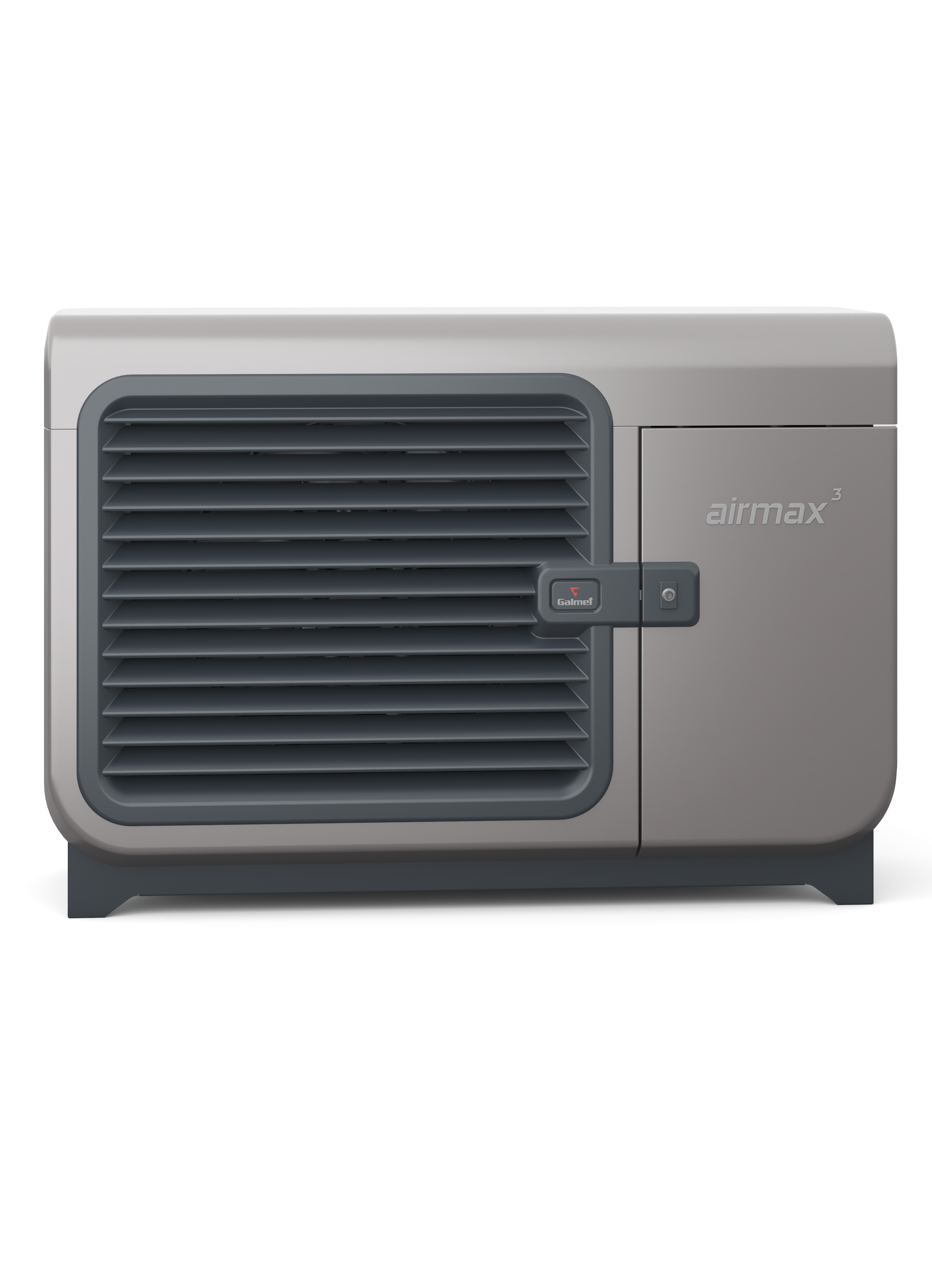 Hybrydowy system grzewczy: pompa ciepła 3F R290 Airmax3 12GT (3-15 kW) + szafa hydrauliczna Onebox z wymiennikiem c.w.u. do pomp ciepła Tower Grand 190 z kompletem elektrycznym 2kW + bufor 120 + centrala Smart Home Sinum