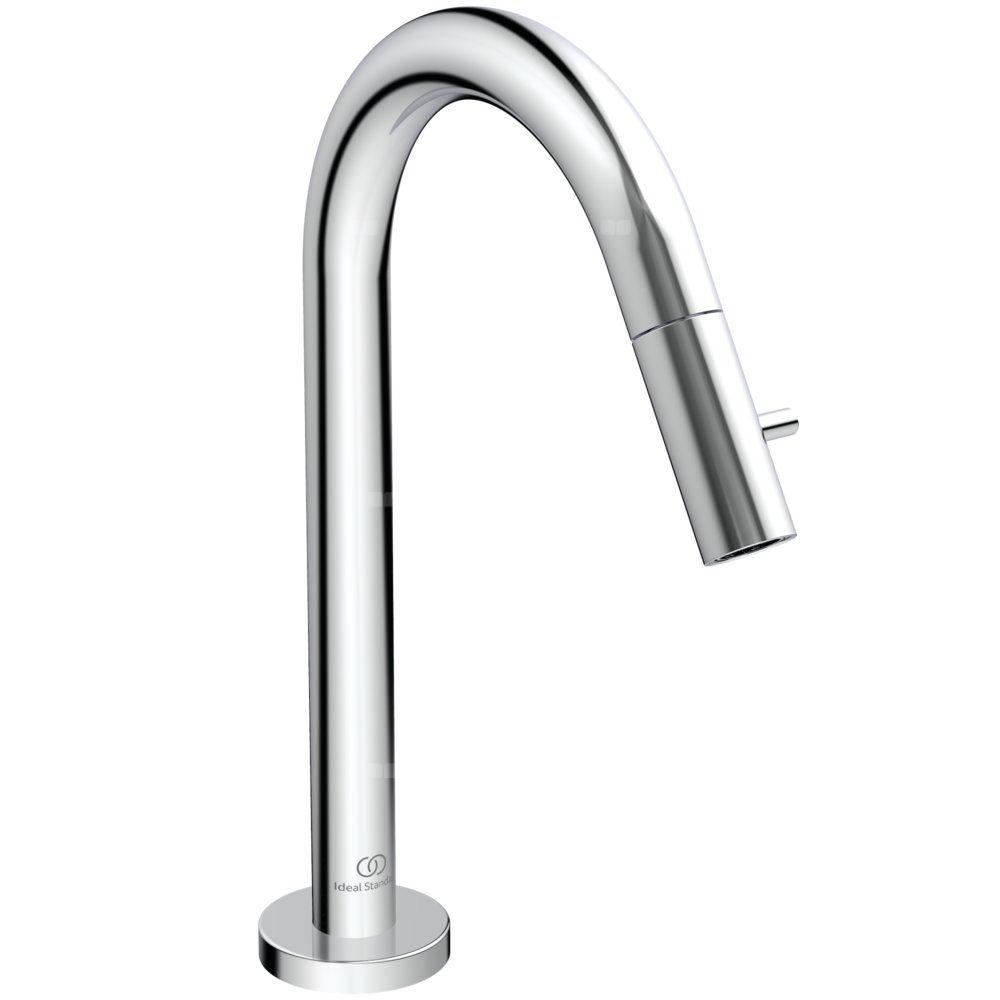 Pillar tap for cold or premixed water. Tubular spout R180. Volume control on the front end of the tubular spout. Hidden aerator Cache M21.5x1. G½“ Ceramic disc headpart opened and closed with a rotary handle. G½” shank fixation. Flow rate at 3 bar 6 l/min. Comply with EN817.