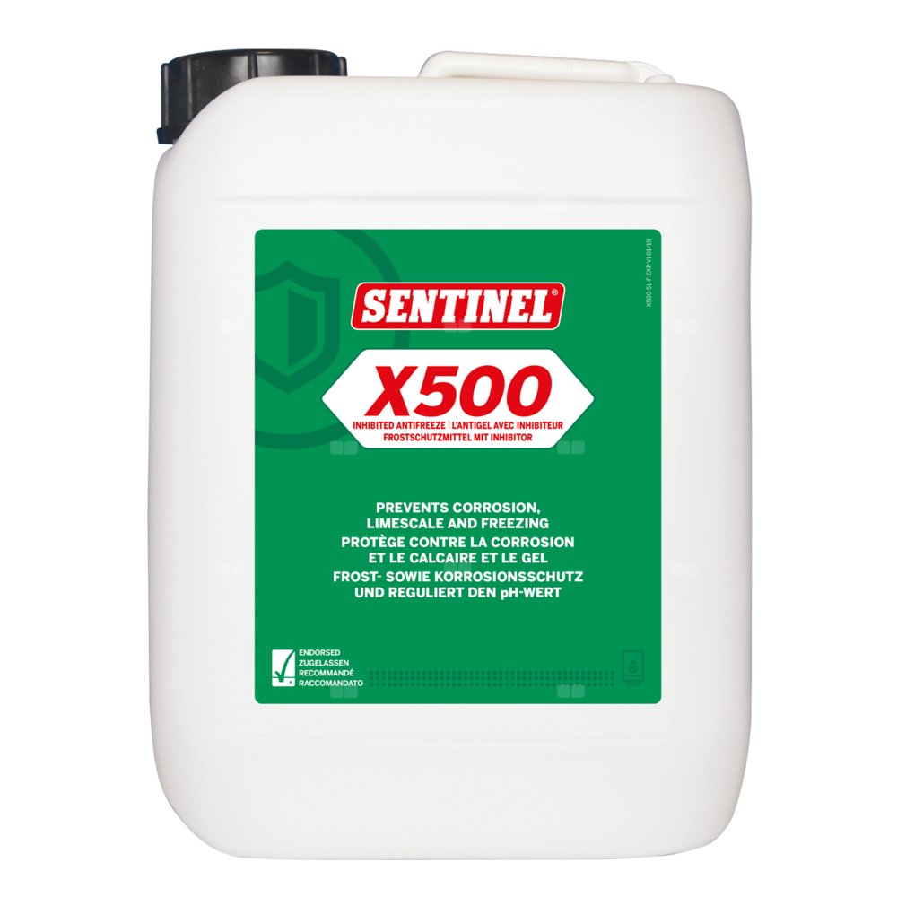 Sentinel X500 Inhibited Antifreeze to idealny preparat do stosowania w instalacjach narażonych na ujemne temperatury. Zabezpiecza on przed kamieniem, korozją i zamarzaniem rur. Ochrona antykorozyjna preparatu Sentinel X500 Inhibited Antifreeze oparta jest na zestawie składników zawartych w Sentinel X100 Inhibitor, ale dodatkowo chroni on także przed zamarzaniem wody w rurach, kiedy temperatura spada poniżej zera.