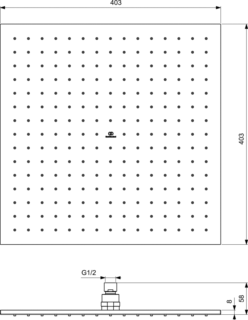 Idealrain deszczownica kwadratowa 400 mm - srebrna satyna.