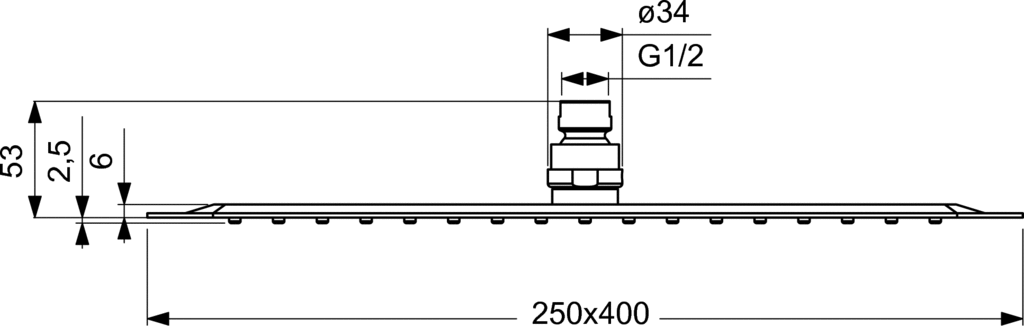 Jednofunkcyjna deszczownica Idealrain Luxe M1. Deszczownica prostokątna 250 mm x 400 mm. Gumowe końcówki dysz zapobiegające osadzaniu się kamienia. Dysza zaprojektowana w trosce o najwyższą wydajność. Ultra smukły design. Ogranicznik przepływu wody do 12 l/min.