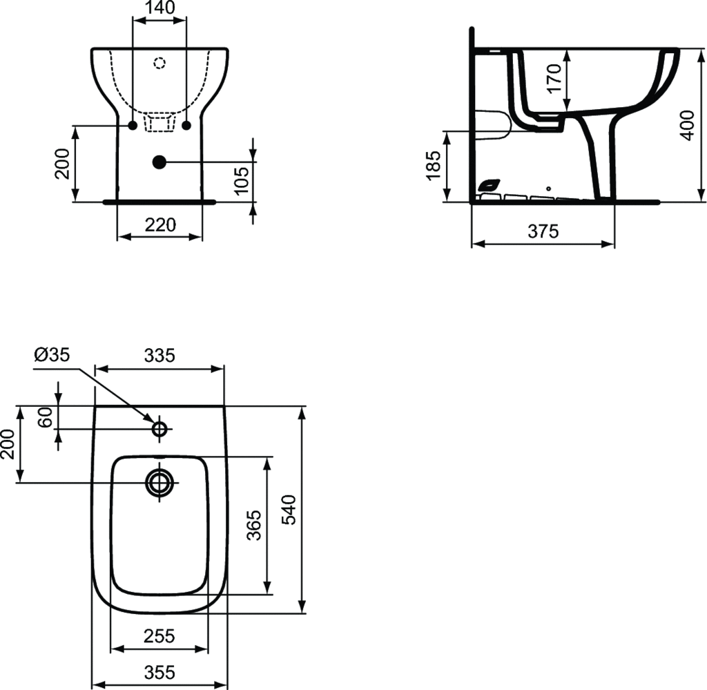 Bidet Ideal Standard i.life A stojący z 1 otworem na baterię. Zestaw montażowy w komplecie.